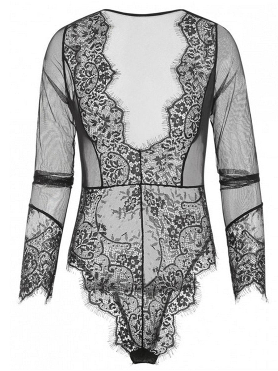 Spring And Summer Erotic Lingerie Low Neck Long Sleeves Lace Mesh Perspective Plus Size Sexy Corset