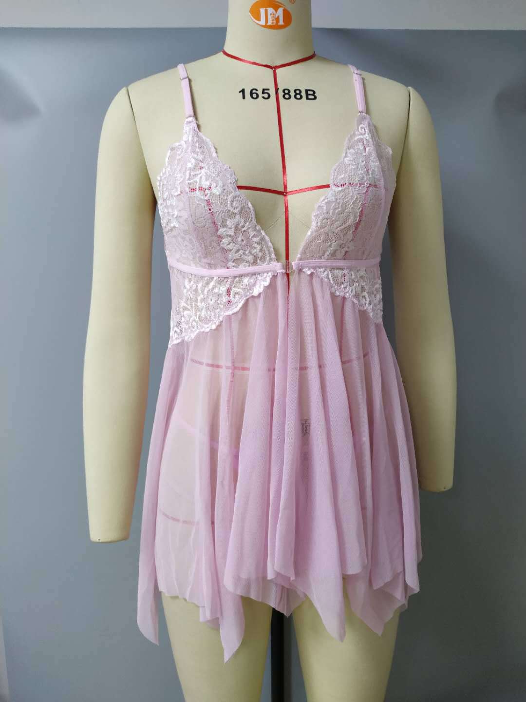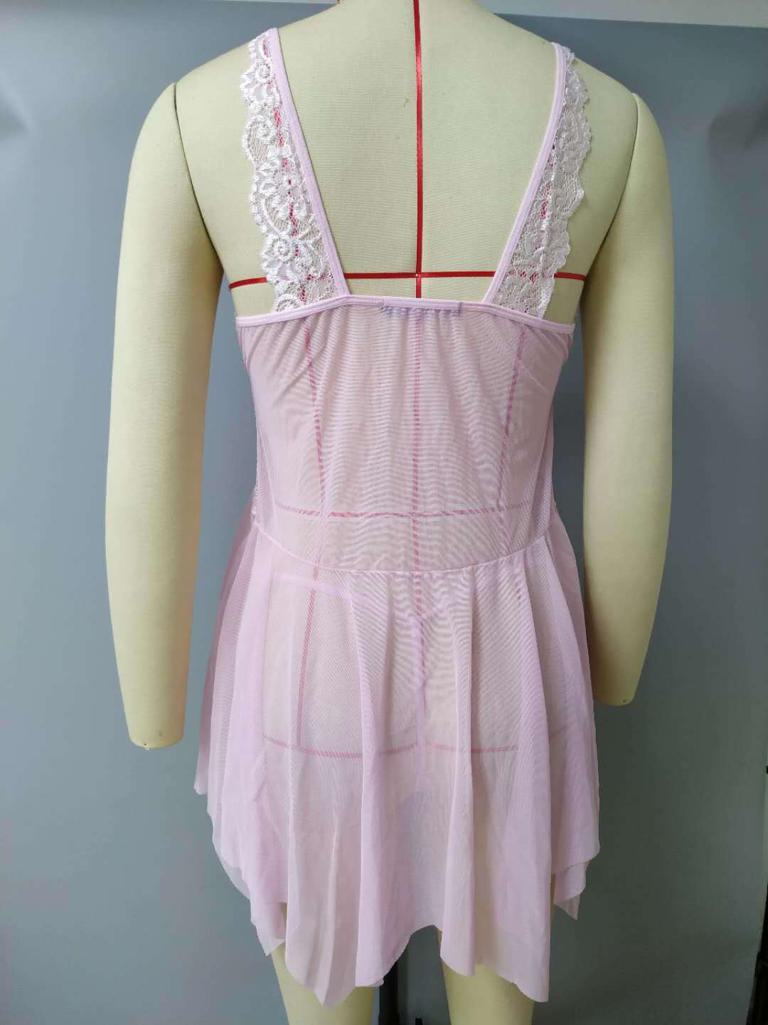 Women's Sexy Lingerie Front Closure Doll Lace Sling Nightdress V-Neck Mesh Pajamas,Pink