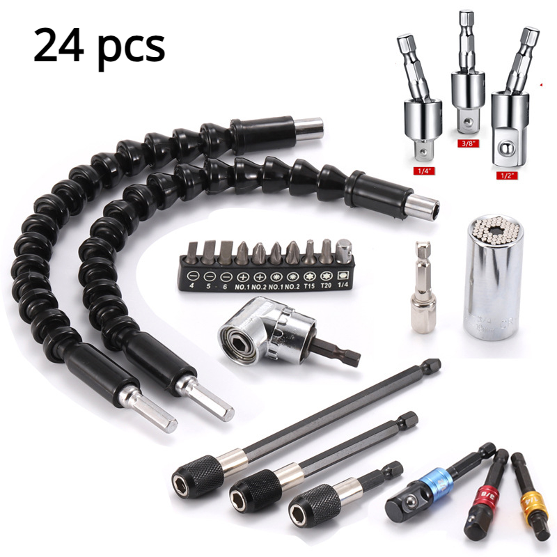 The hexagon drill bit holder and connection fit drills well. Great flexibility to bend, twist and straighten even in narrow confined space. The shaft can take turns randomly. It is also good for transport and storage.