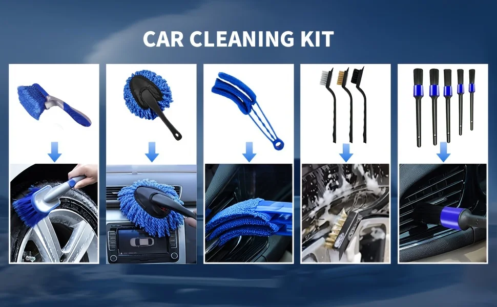 27 Piece Car Detailing Kit, Car Interior Detailing Kit, Car Detailing Brush Set, Car Detailing Kit, Car Interior Detailing Kit Car Cleaning Kit (For Interior, Exterior, Wheels) Including Storage Bag