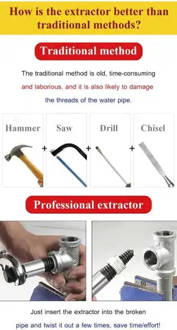 Function: Remove damaged screws bolts and water pipes, can be used to remove most kinds of damaged, stripped, rusted, broken, or stuck screws from any wood or metal surface with relative ease.