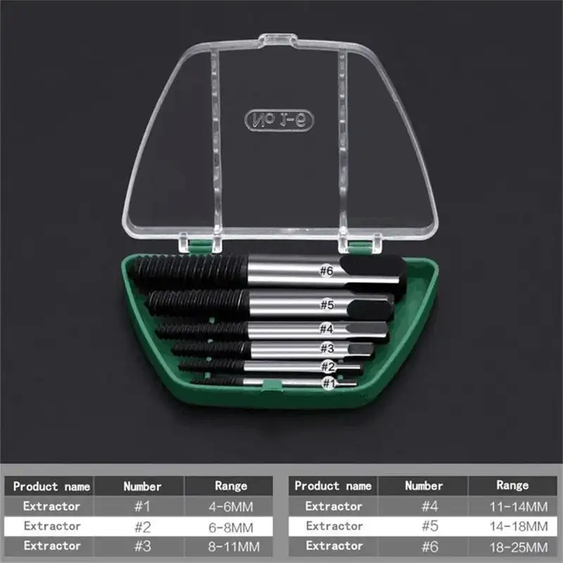 6-piece heavy duty steel extractor: Include different sizes of screw extractor to meet different needs.