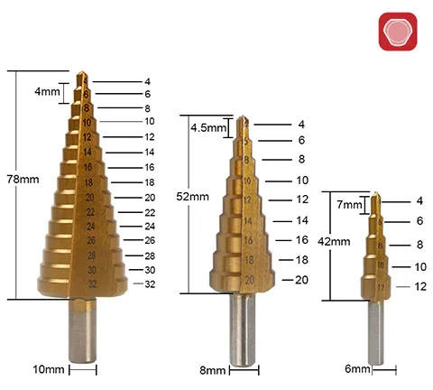 New technology in drill Material; bearing steel combined with a titanium coating. More capable and durable. Step design let makes drilling cutting precise & efficient, Convenience, and Widely used. New Design and Smoother cutting, Make your industrial buildings more perfect.