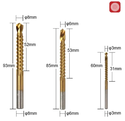 These Drill Bit Set include 6 individual drill bits. It's economical and easy to store. Titanium coating is very suitable for using to cut holes in a variety of materials including steel, brass, wood, plastic, etc.