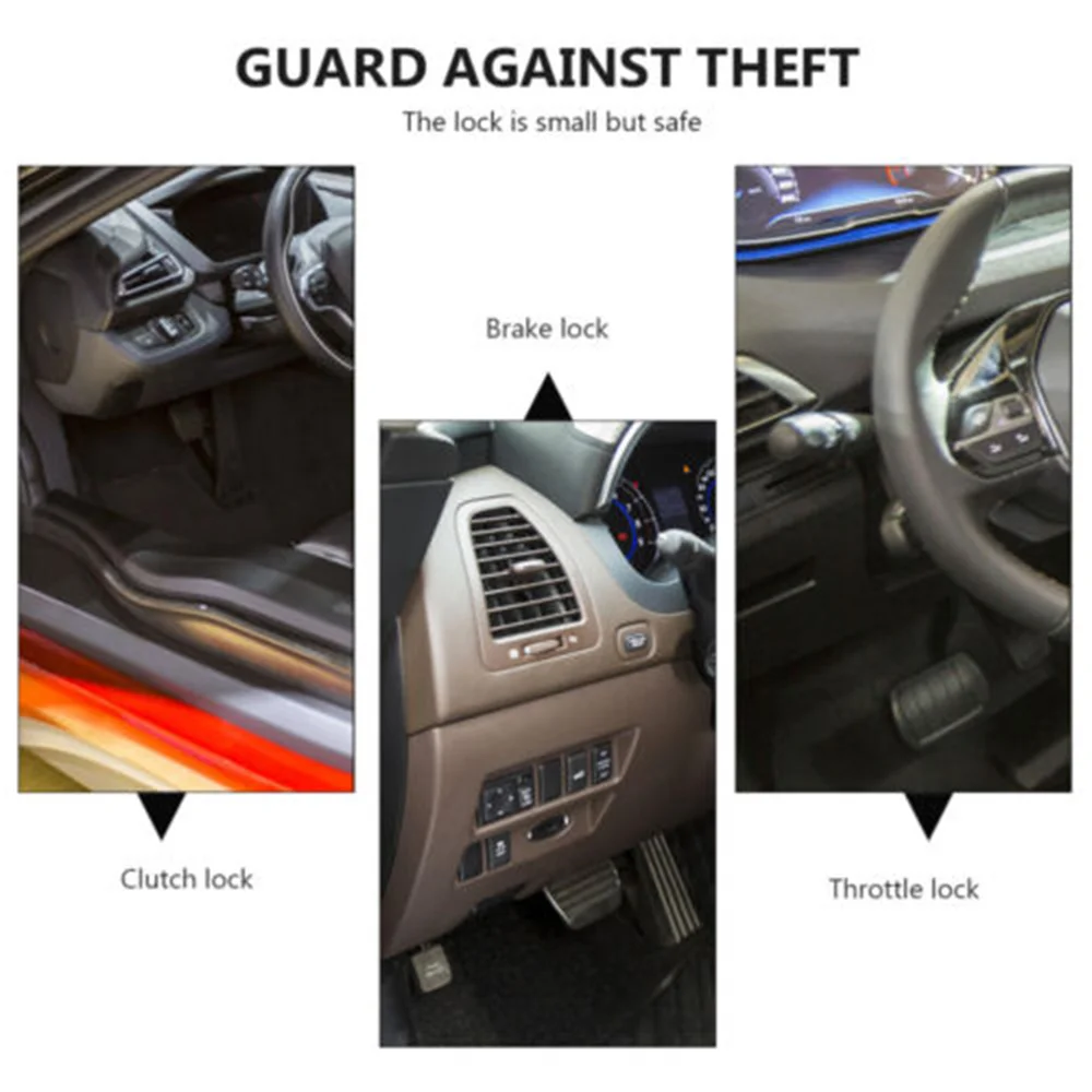 2.【Prevents Theft】 : Protecting your vehicle from unauthorized use, this anti-theft brake lock securely locks the clutch pedal or brake pedal, making it impossible to drive the car without removing it.