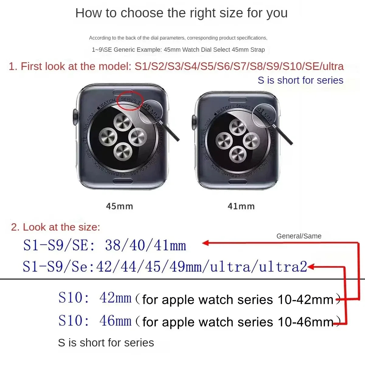 42 / 44 / 45 / 49mm  Fits wrist sizes 5.7 - 8.7 inches