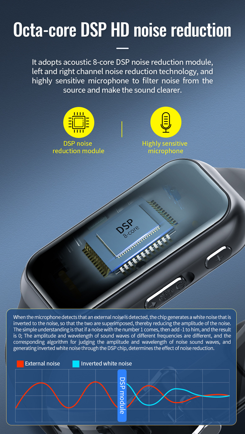 4. 360 degree dead angle recording: A professional DPS acoustic processor that automatically analyzes human voice and noise, automatically separates and greatly reduces background noise, and restores true sound.