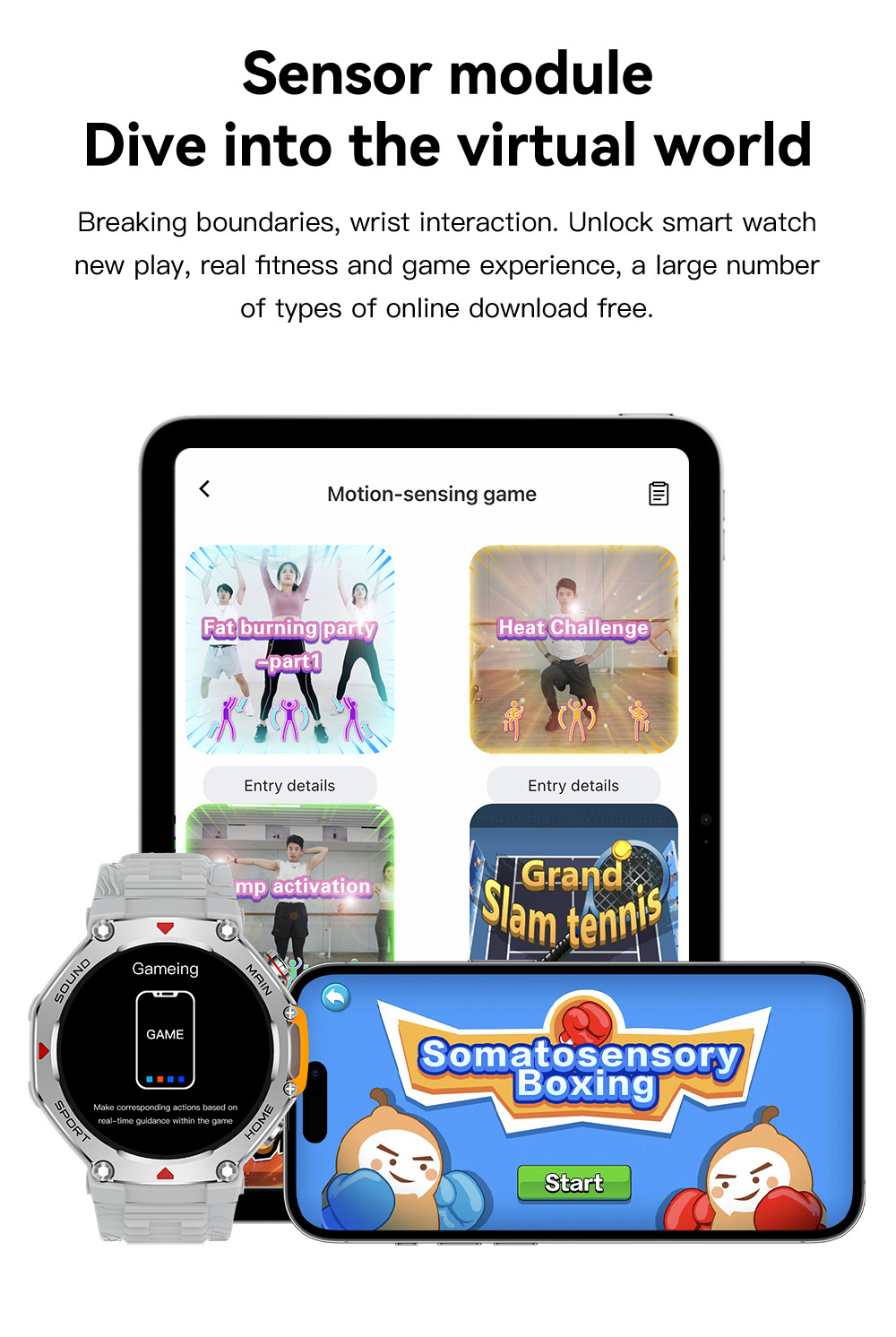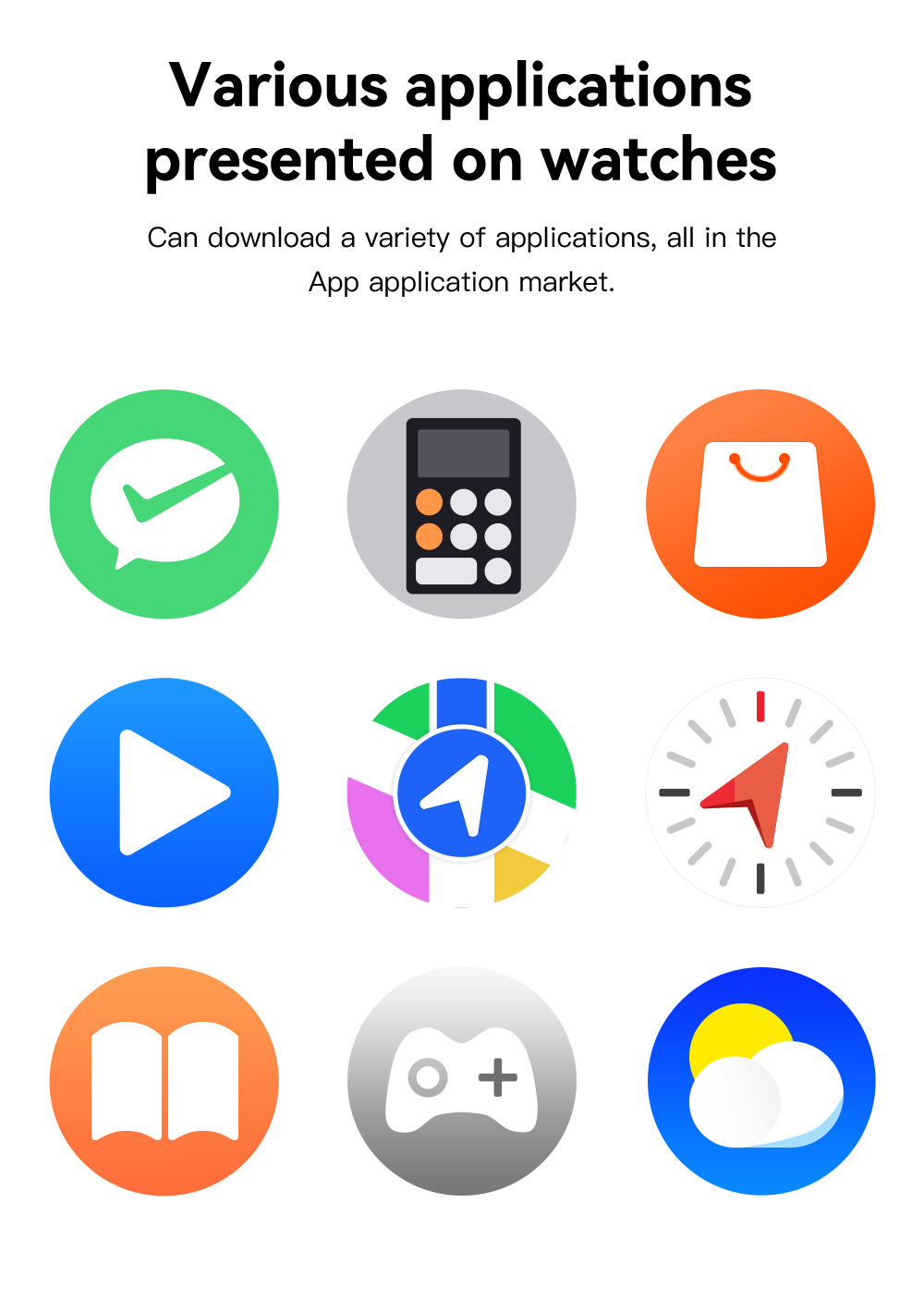 Product Features 500+ dials free download, Lingdao, one-key connection, local music playback (can be connected to Bluetooth headset playback) albums, e-books, recordings, the bottom of the main menu pushed, the bottom of the music playback interface pushed, somatosensory games, GPS sports, game downloads, backstage management, APP skinning function, APP sports track video, health family sharing location health information, SOS alarms, and so on. Album, video custom dial push.