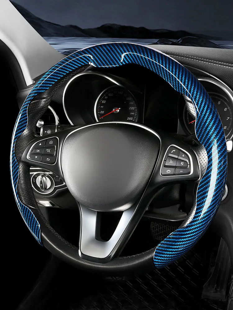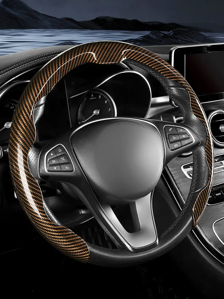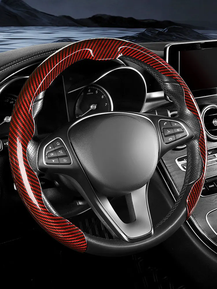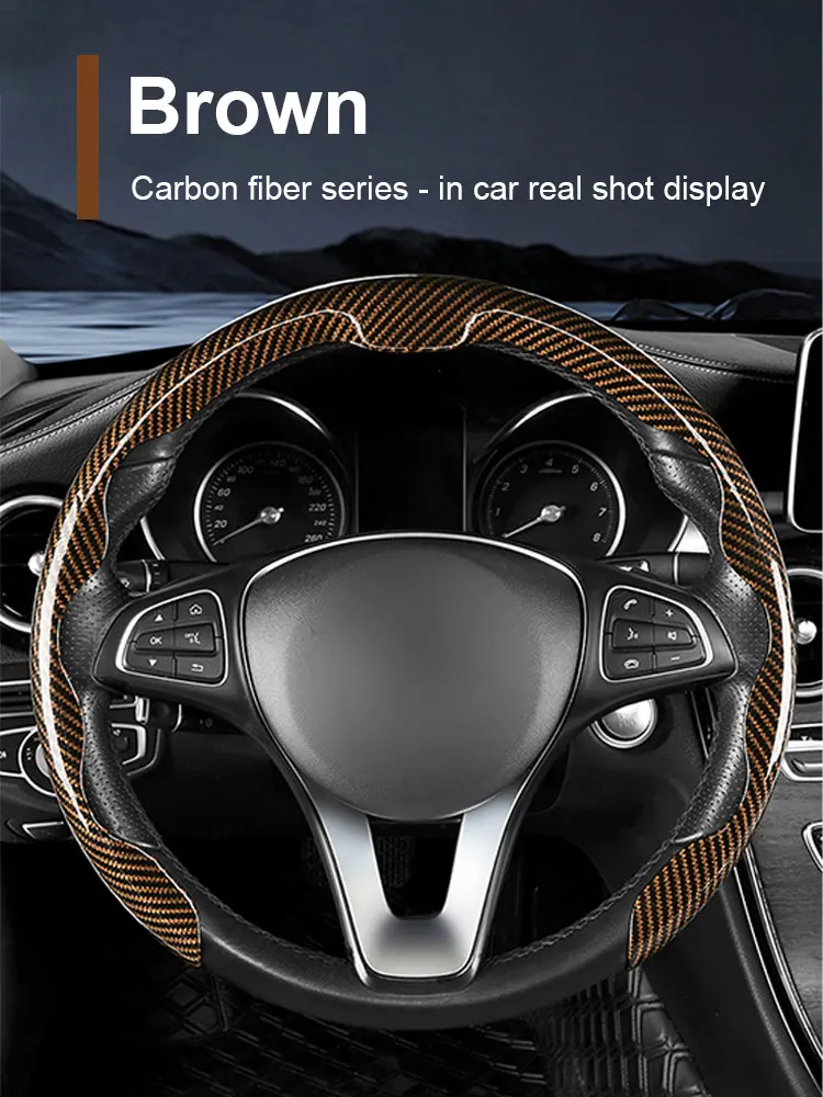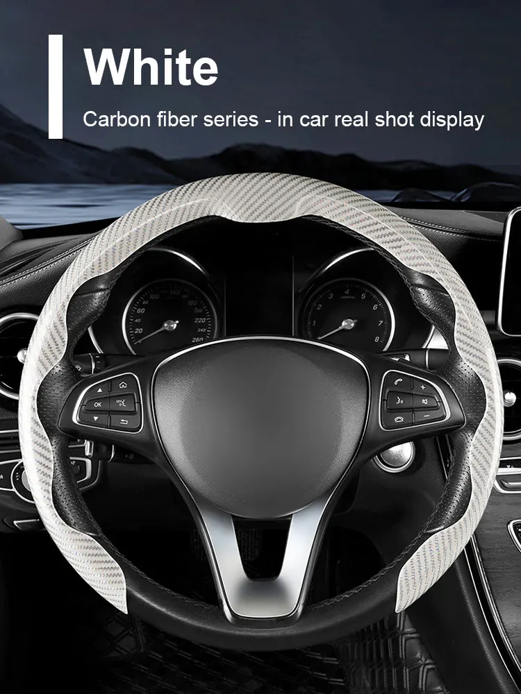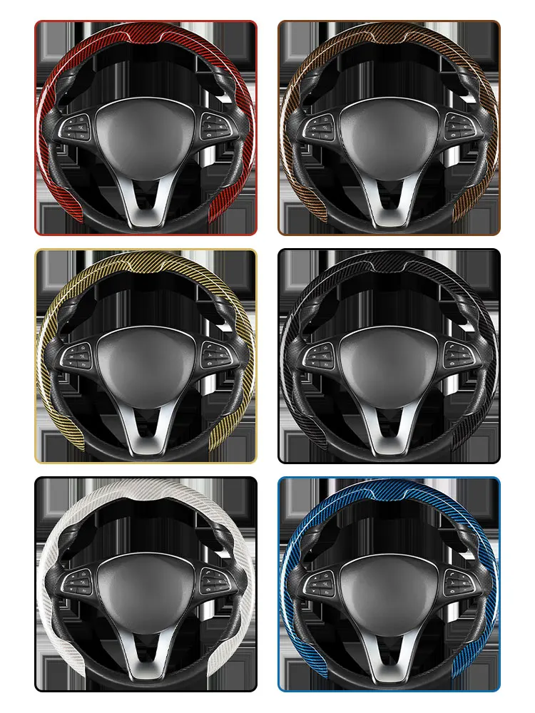 High-end Carbon Fiber Pattern Suede Car Steering Wheel Cover suitable for All year round 6 colors