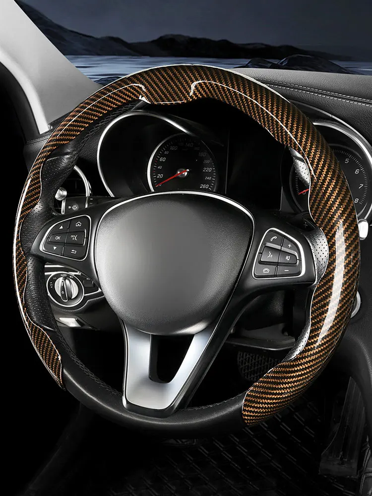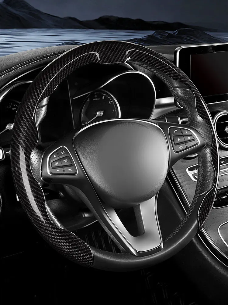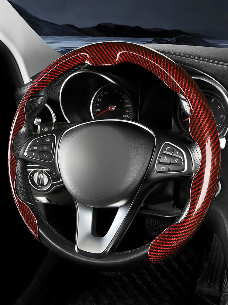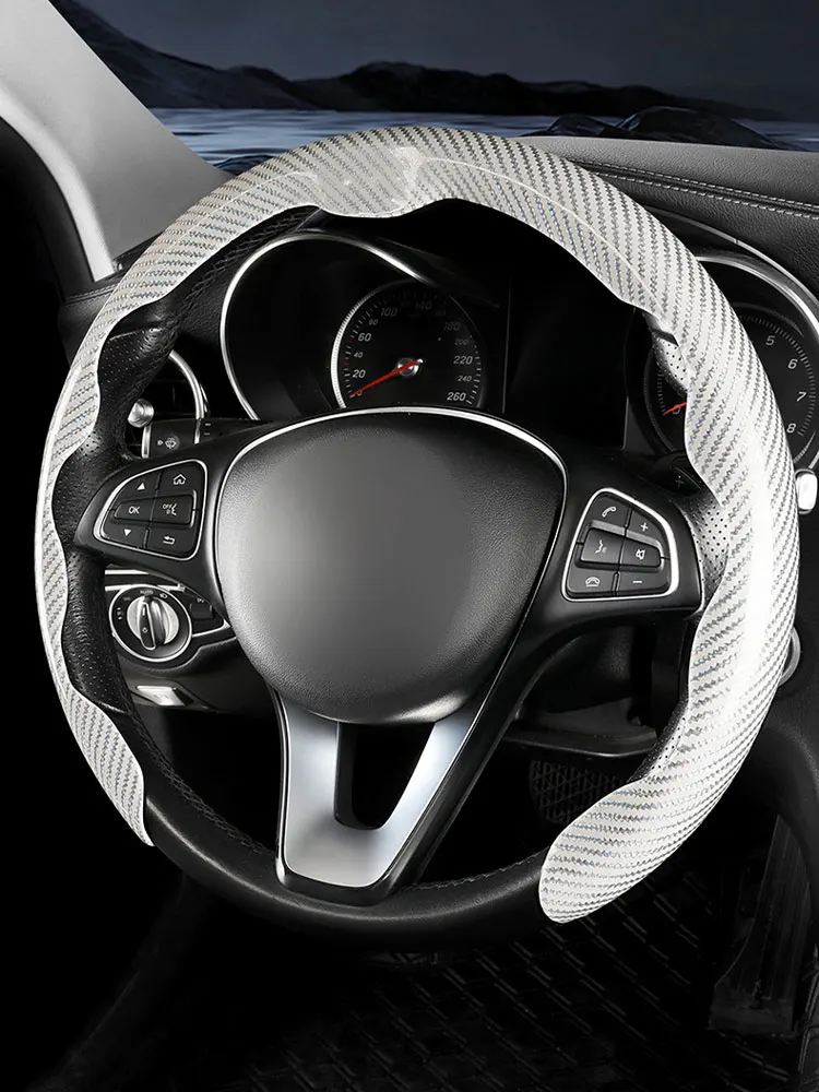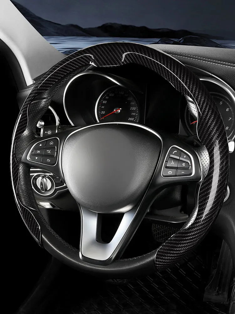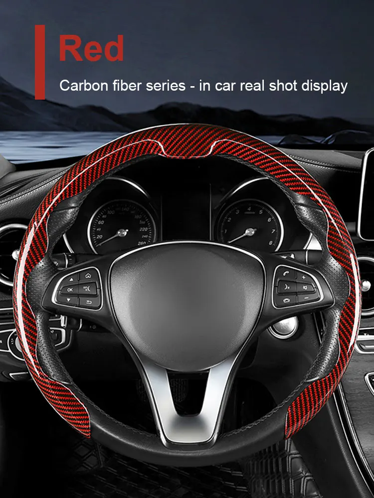 High-end Carbon Fiber Pattern Suede Car Steering Wheel Cover suitable for All year round 6 colors
