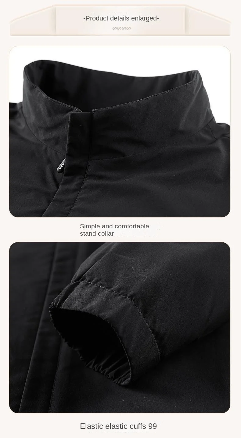 Fashionable Stand Collar Design:Featuring a stand collar, this jacket offers a modern twist to classic overcoat style.