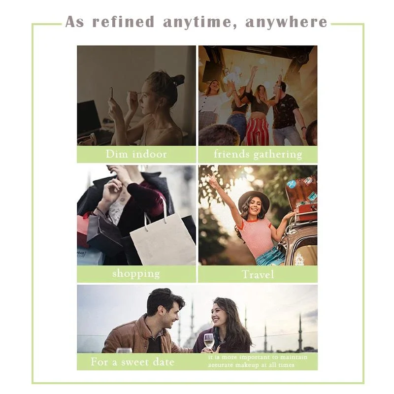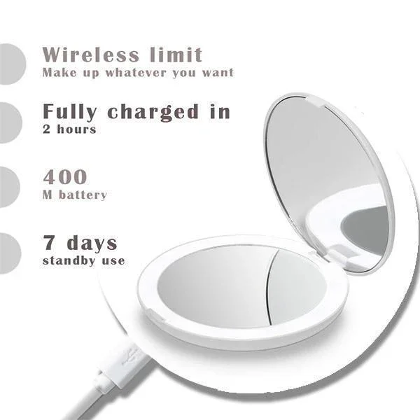 The latest design is USB rechargeable,uniform light, clearer viewing details, suitable for various makeup looks. Ultra-thin surface, foldable and portable, elegant appearance.