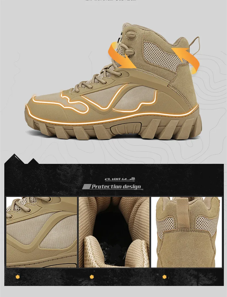 Men's boots Breathable hiking boots Men's outdoor desert training boots Non-slip high-top boots Men's work shoes