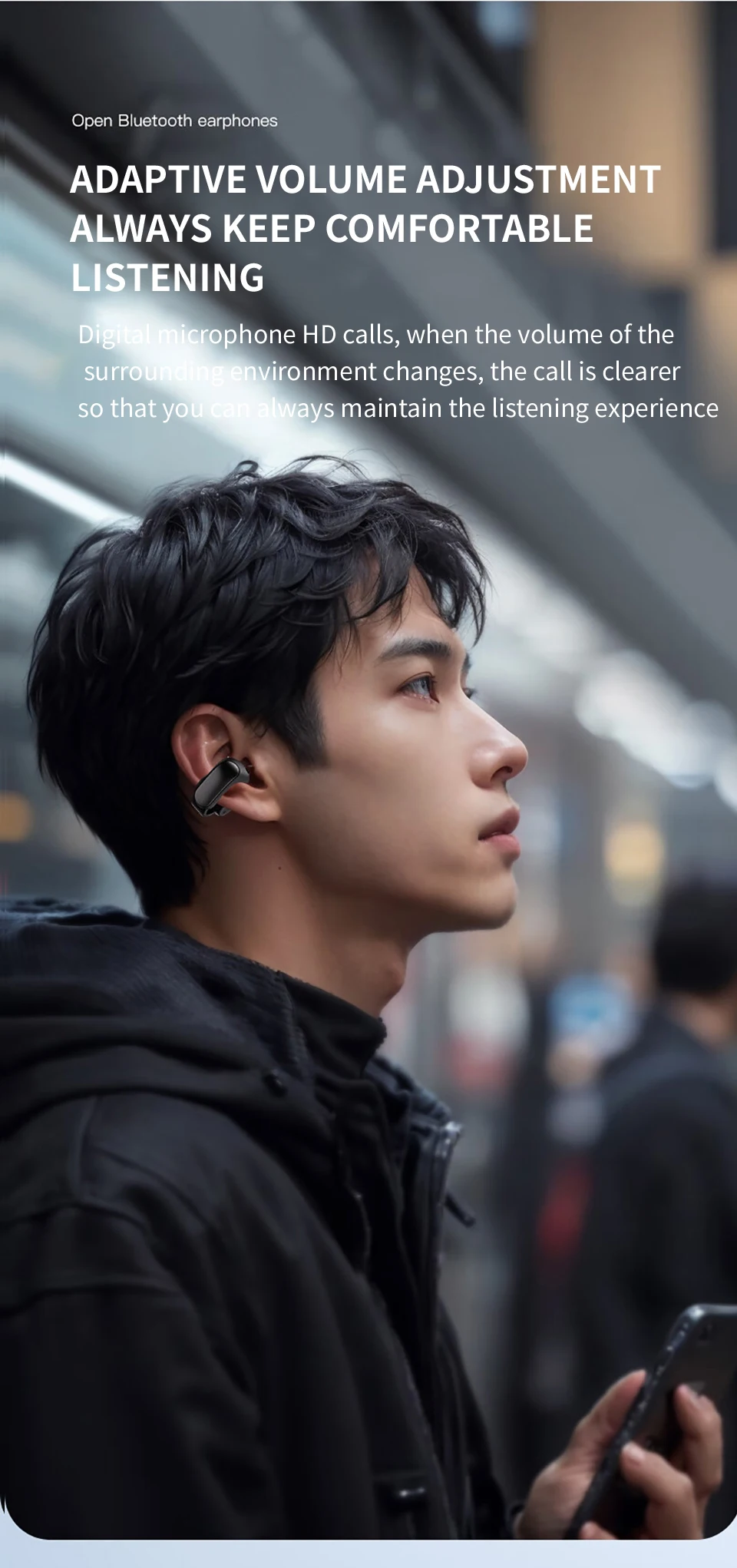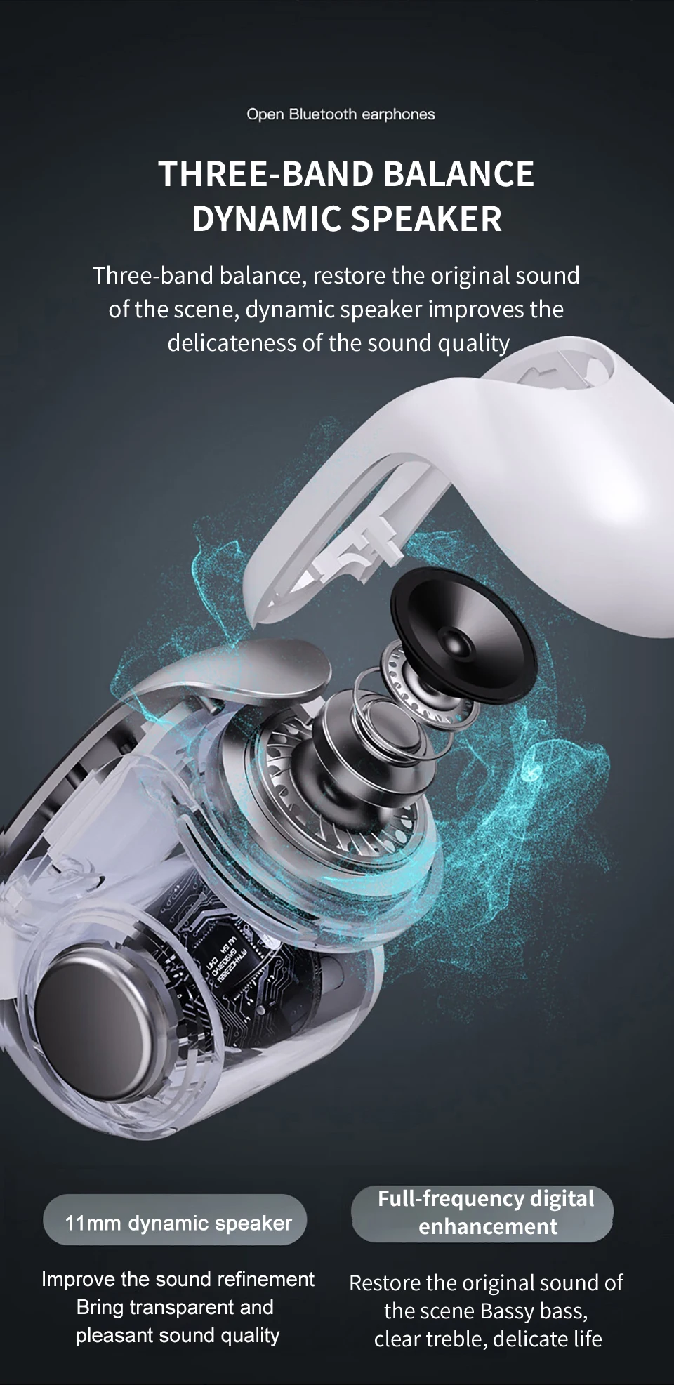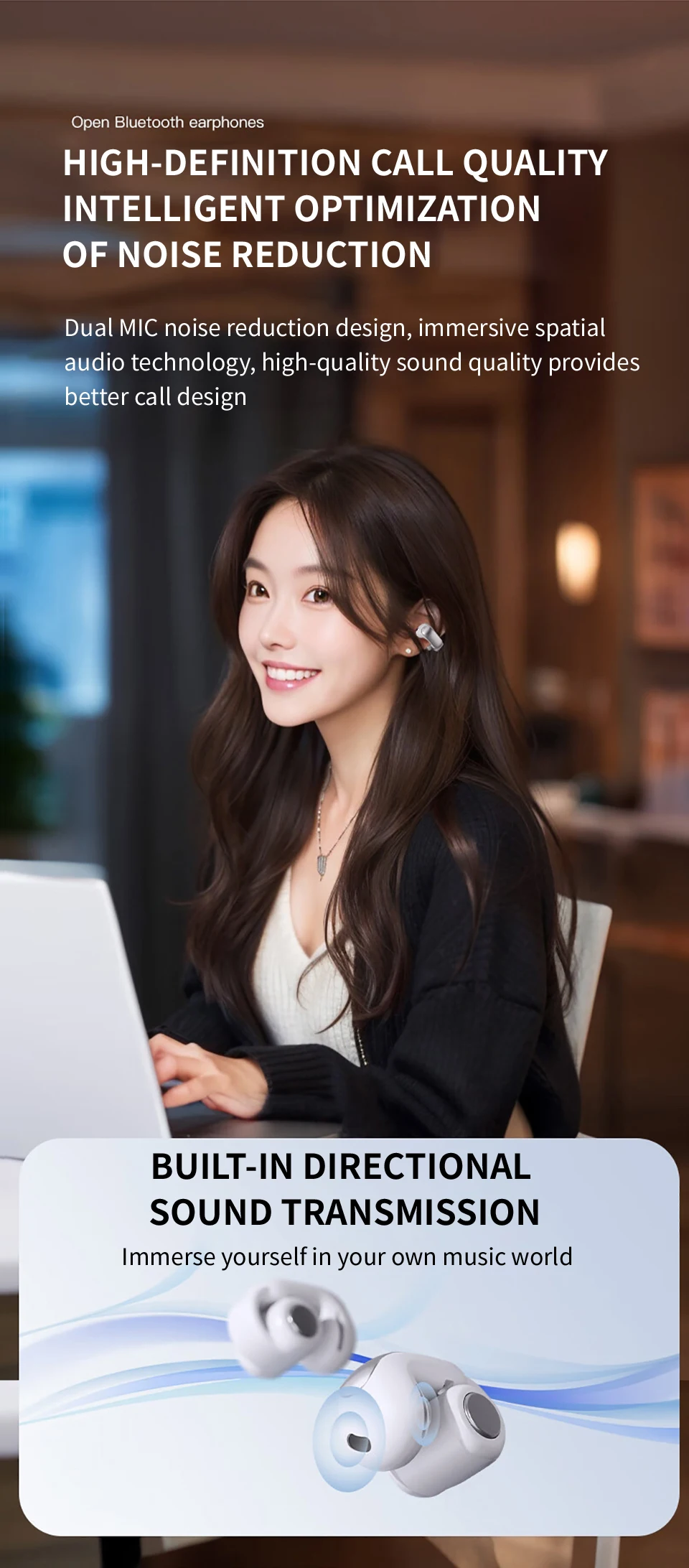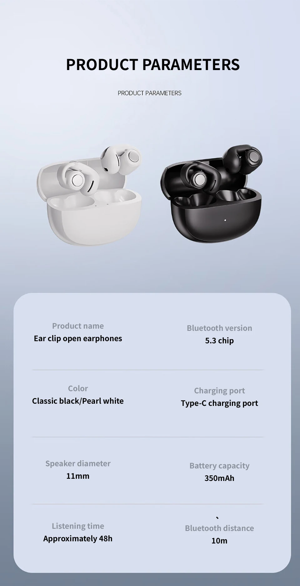 Ear Clip Earbuds:Experience seamless audio with Bluetooth5.3 and TWS ENC, ensuring crystal-clear calls and immersive sound.