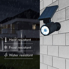 [SOLAR POWERED LIGHT] This LED spotlight does not require batteries or electricity to operate as it has built-in industrial quality solar panels that absorb the sun’s rays during the day and uses that stored energy for an all-night’s worth of illumination!
