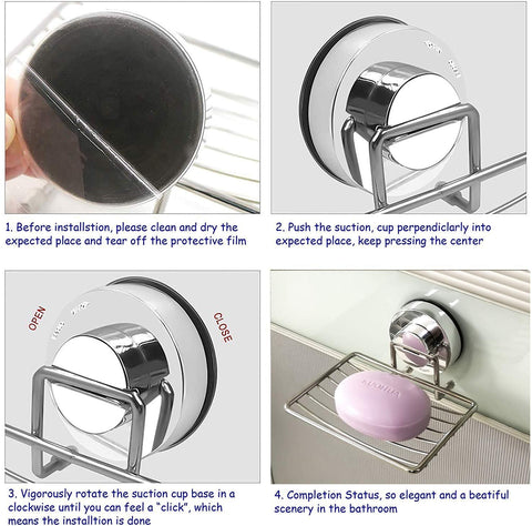 No Drill Powerful Vacuum Suction Cup Stainless Steel Bathroom Kit Bathroom Kitchen Organizer Shower Shelf