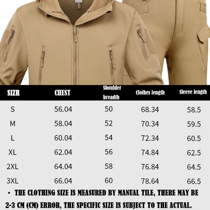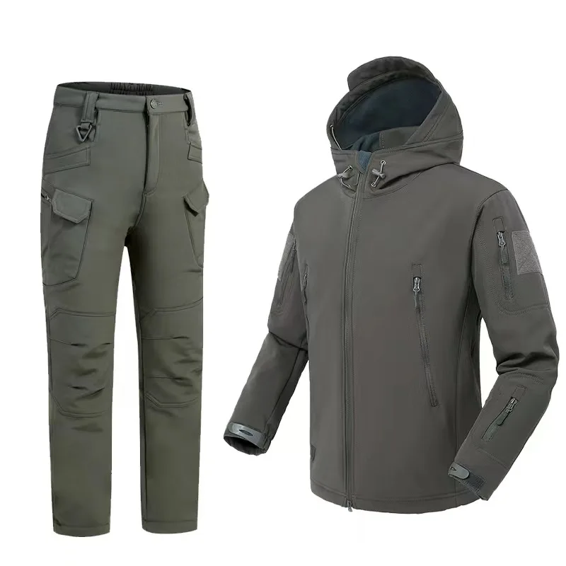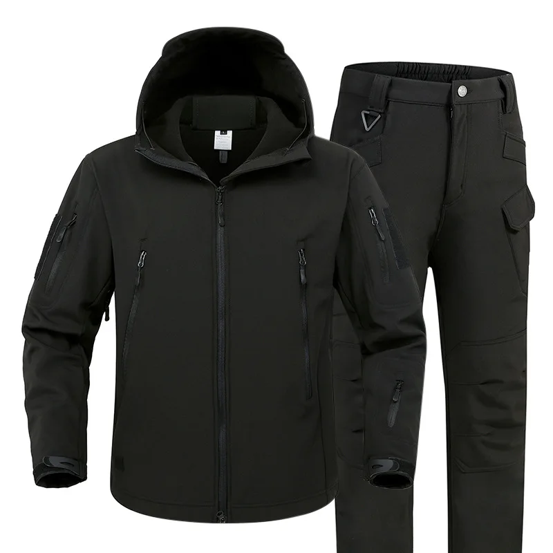 Product Details Introduction:Fashion new fall and winter outdoor plus size suit sharkskin out warm thickened unisex trend soft shell camouflage two-piece set