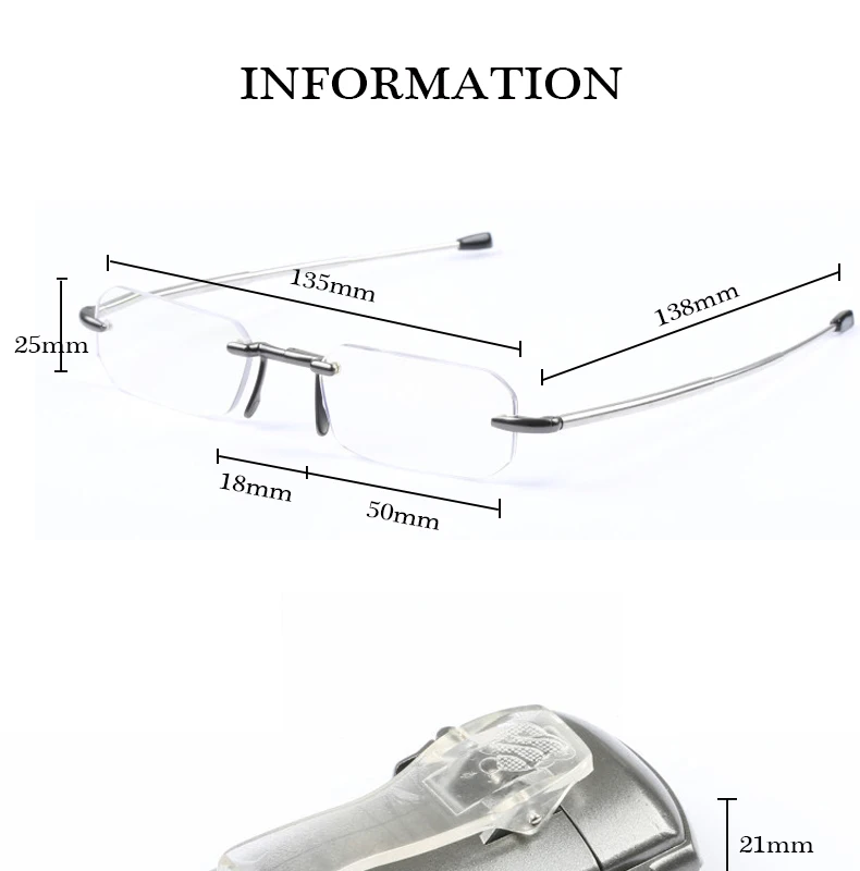 Package Included:1 x Folding Frameless Reading Glasses(with Belt Clip case)