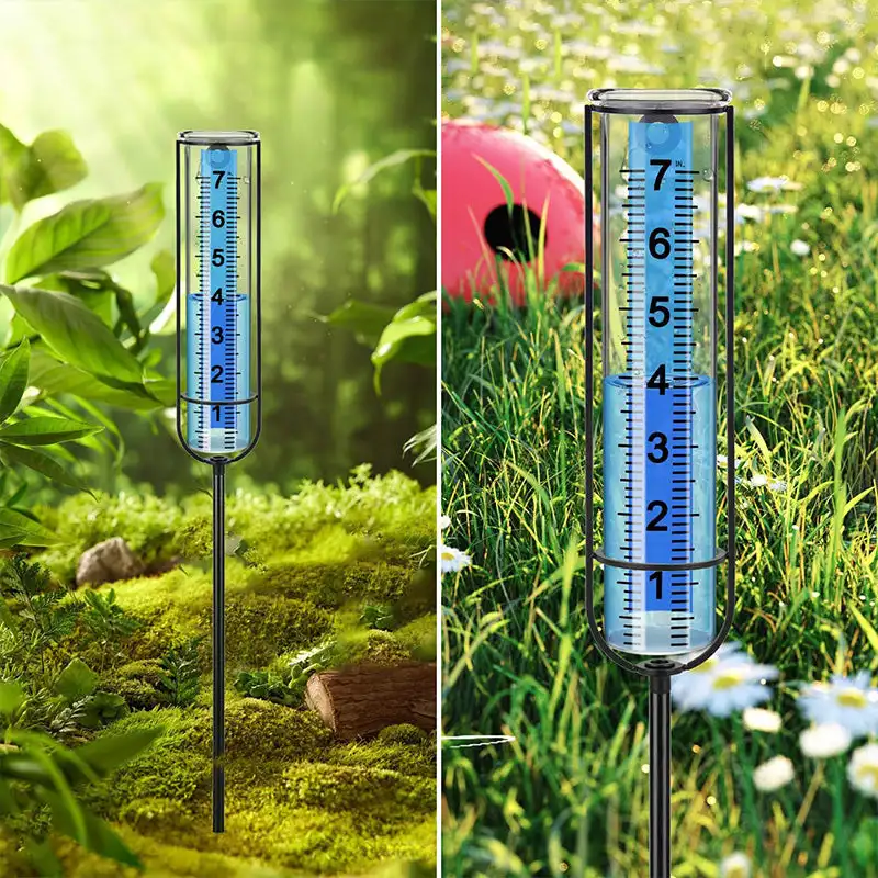 Crafted with durability in mind, this rain gauge features a sturdy metal stake that ensures stability in various outdoor conditions.