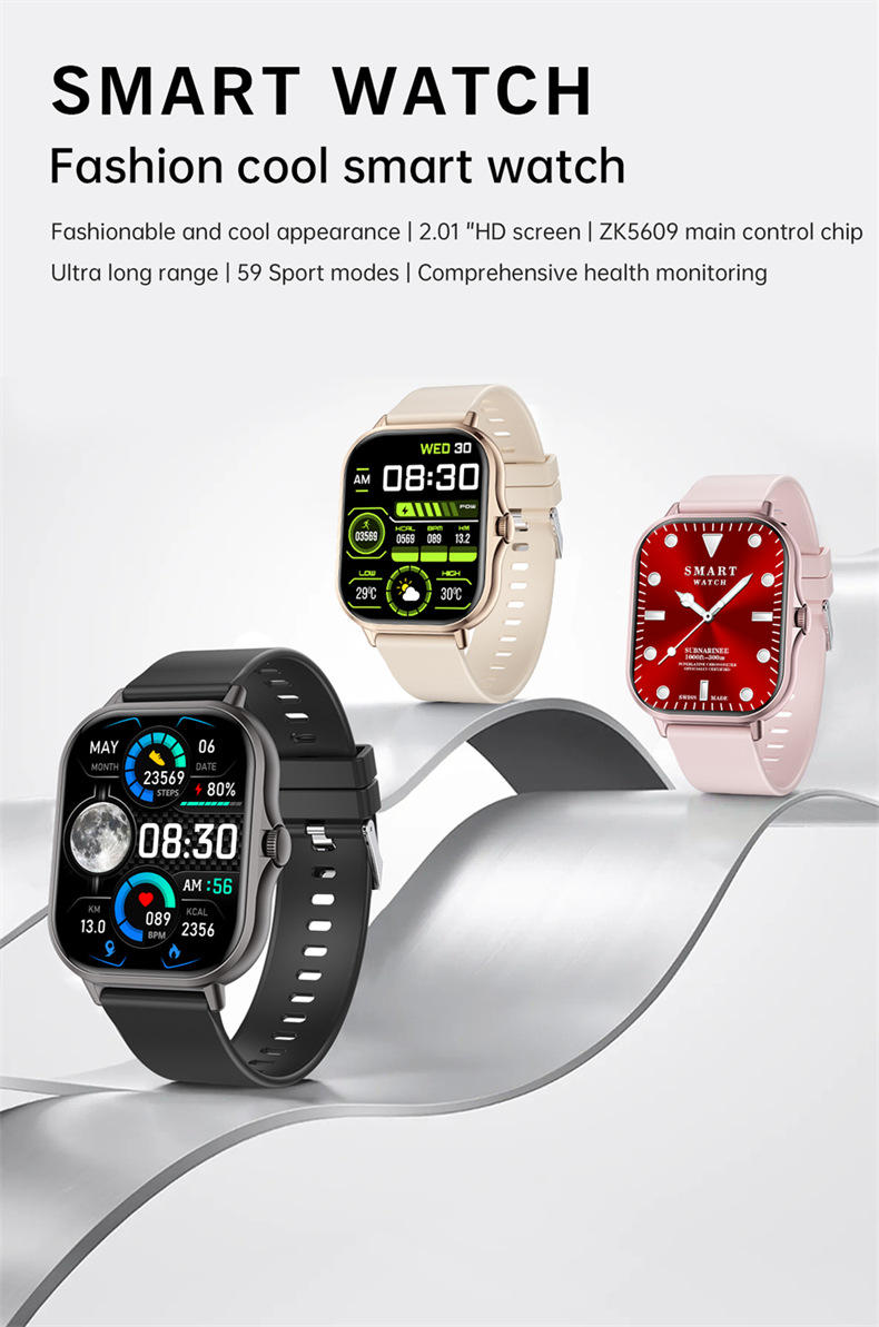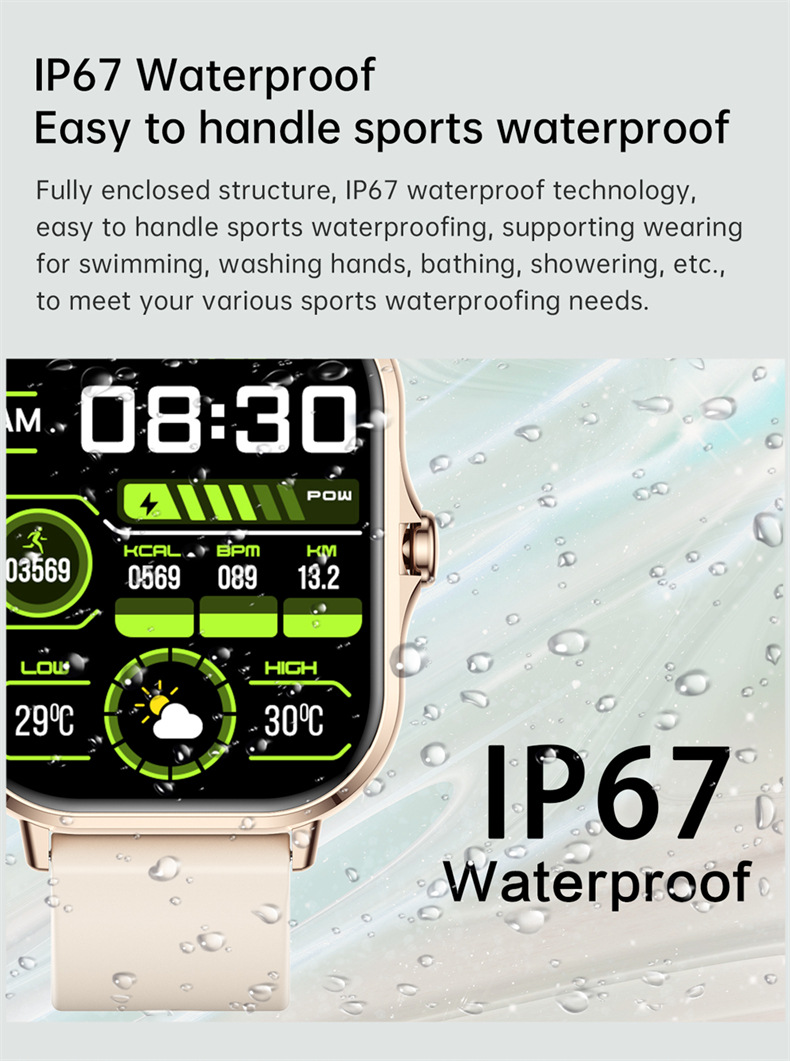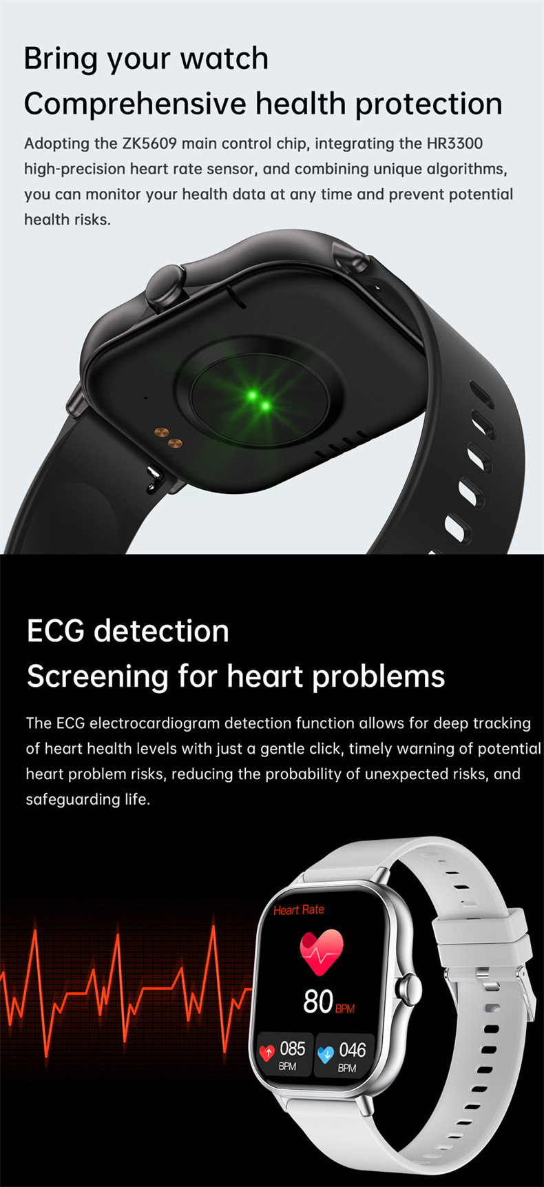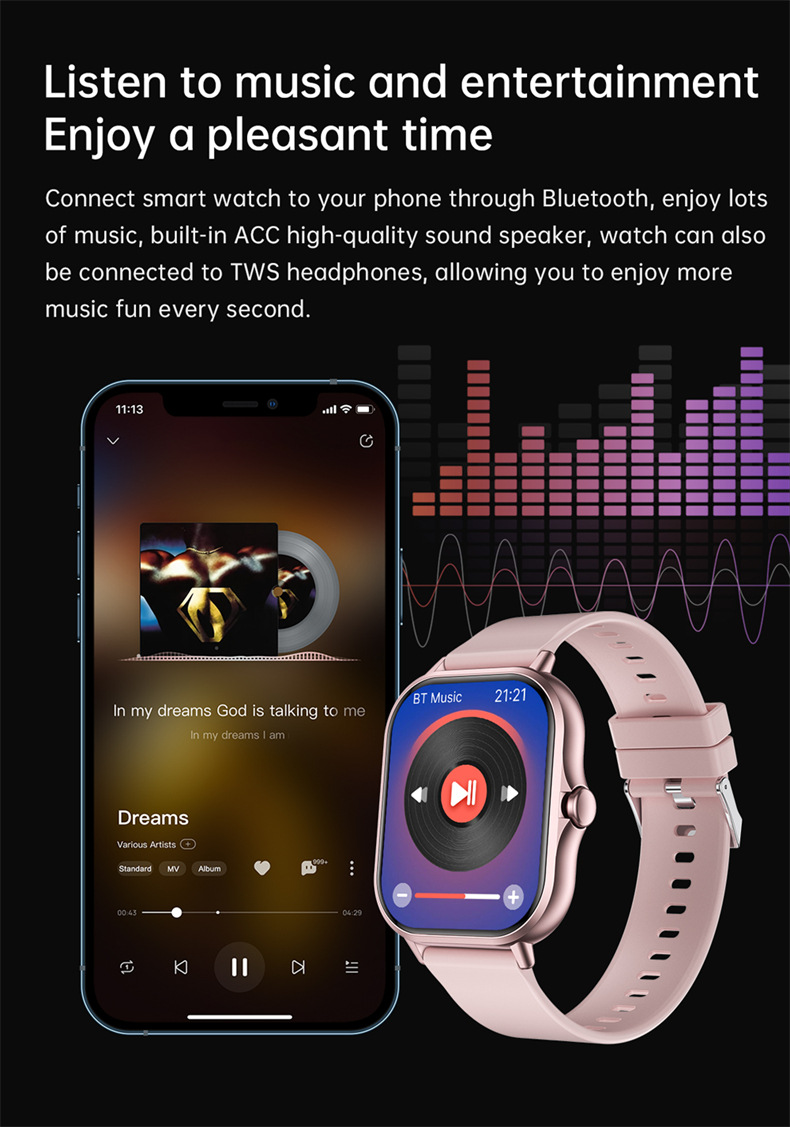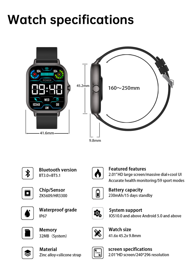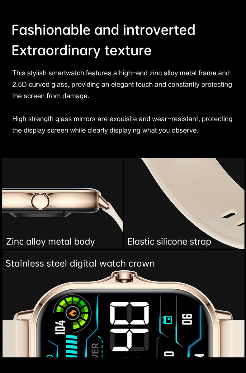 Daily Smart Features: Bluetooth call, voice assistant, weather forecast, alarm clock, timer, stopwatch, calendar, calculator, remote control photography, music control, find phone/find watch, do not disturb mode.