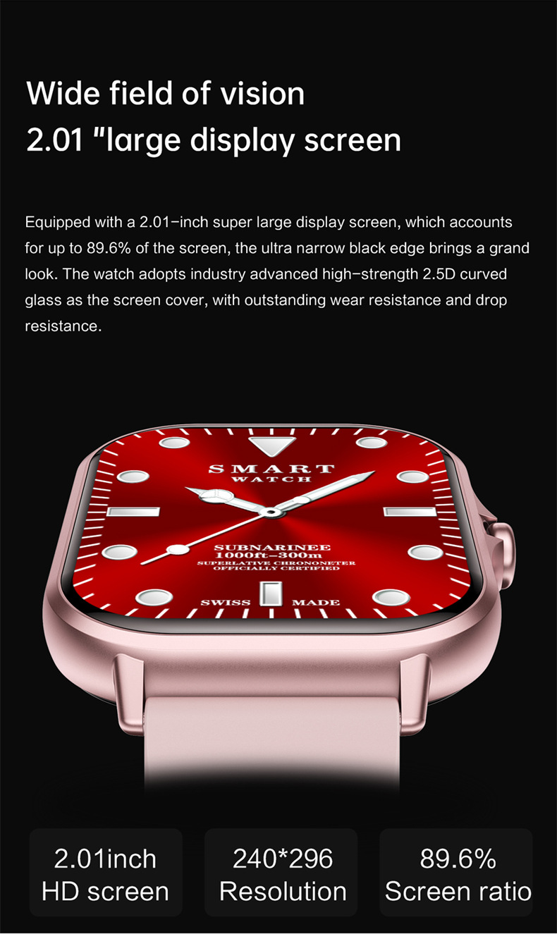 Display: Large 2.01'' AMOLED Curved Screen, supports 2 Always-on Modes, 60Hz high refresh rate.