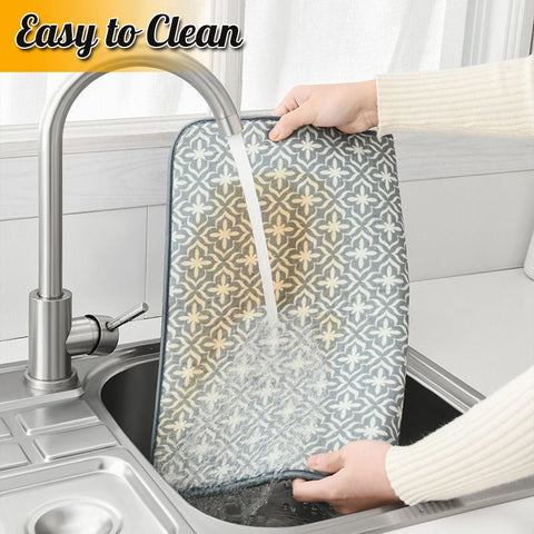 It can absorb four times the weight of water, is a good helper of dishes, cutlery, cups draining. Absorbs moisture quickly and keeps the surface dry and clean at all times.