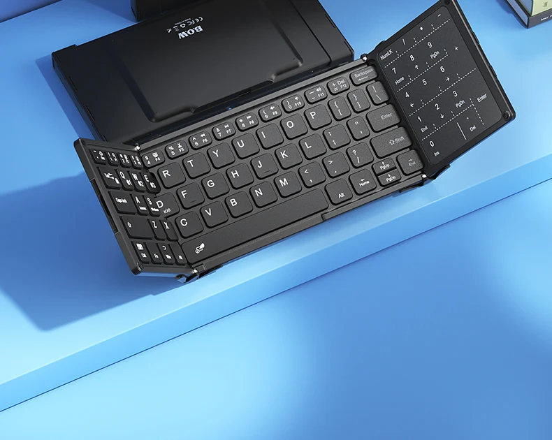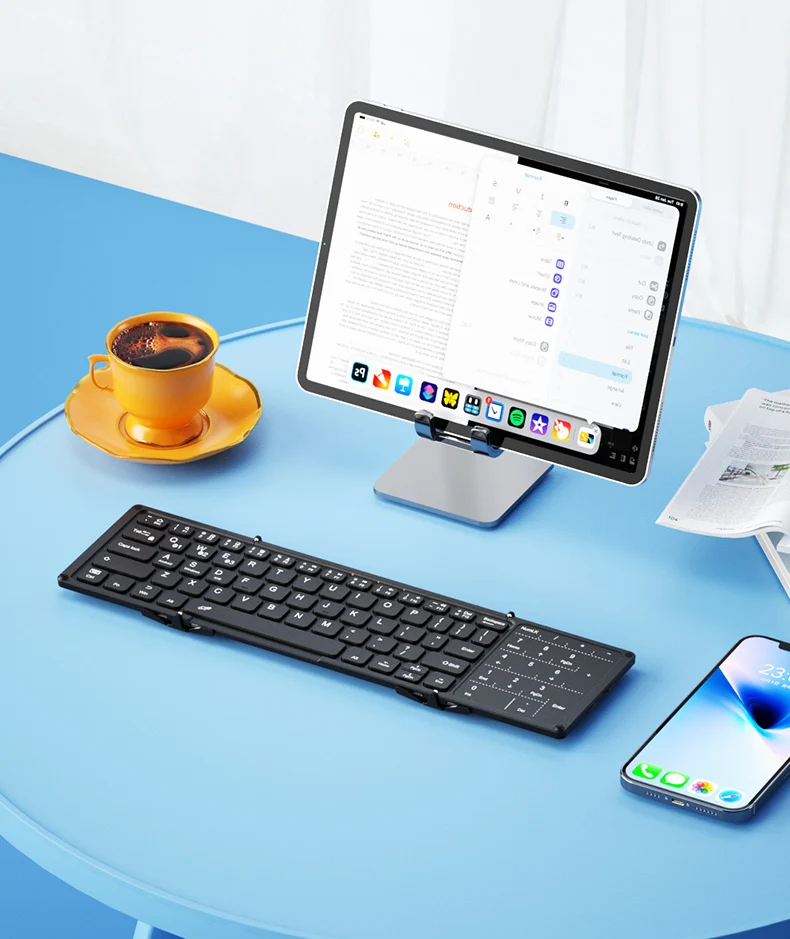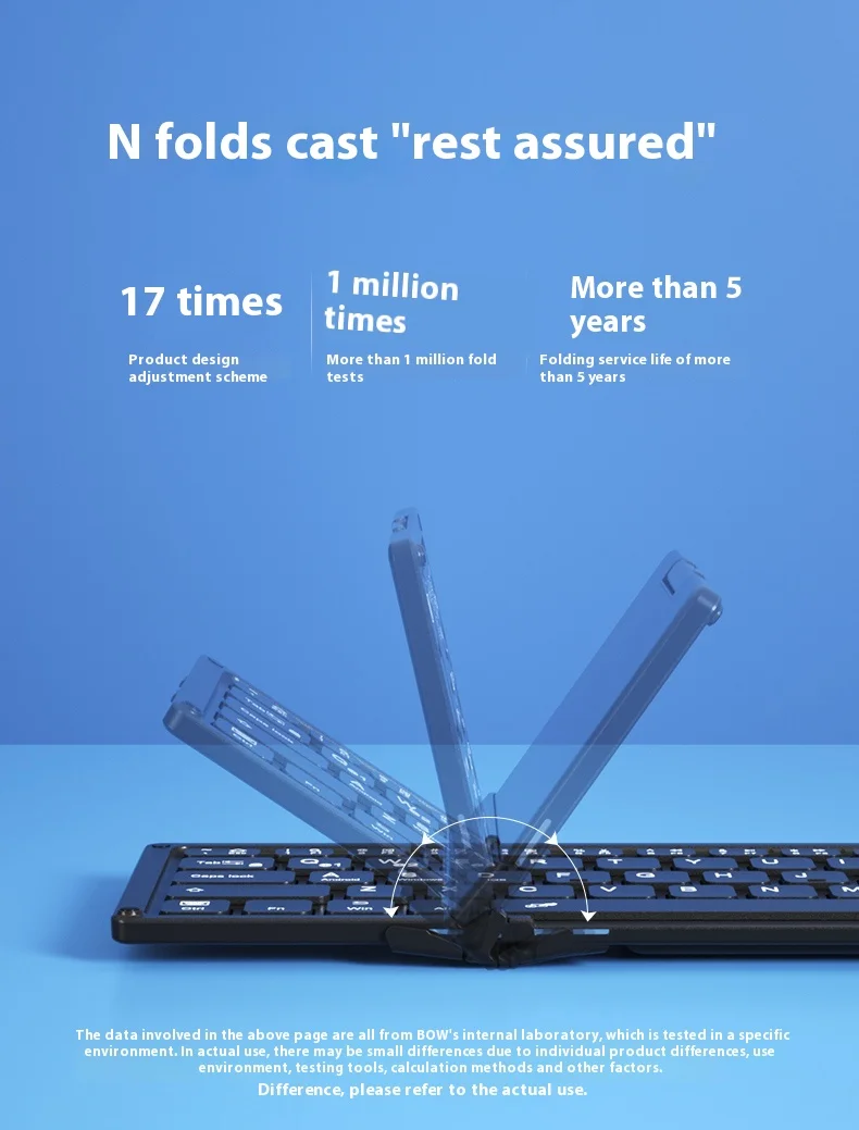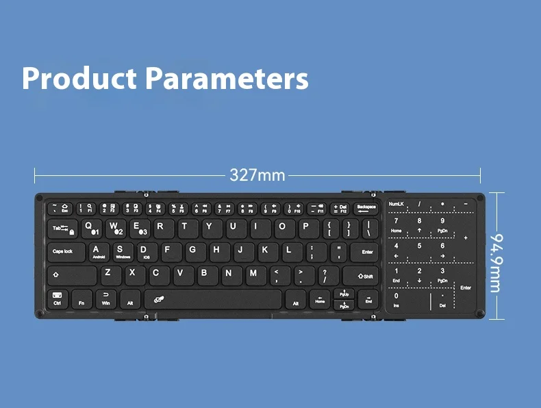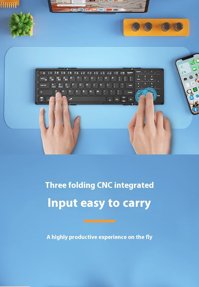 Tri-Folding Keyboard : Combine the nice input user experience of standard size keyboard and portable mini size advantage into one keyboard.