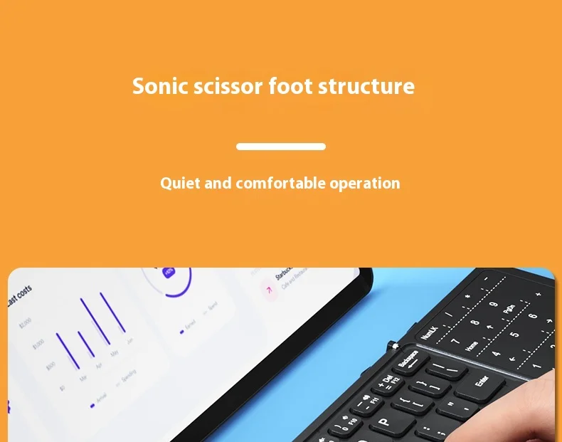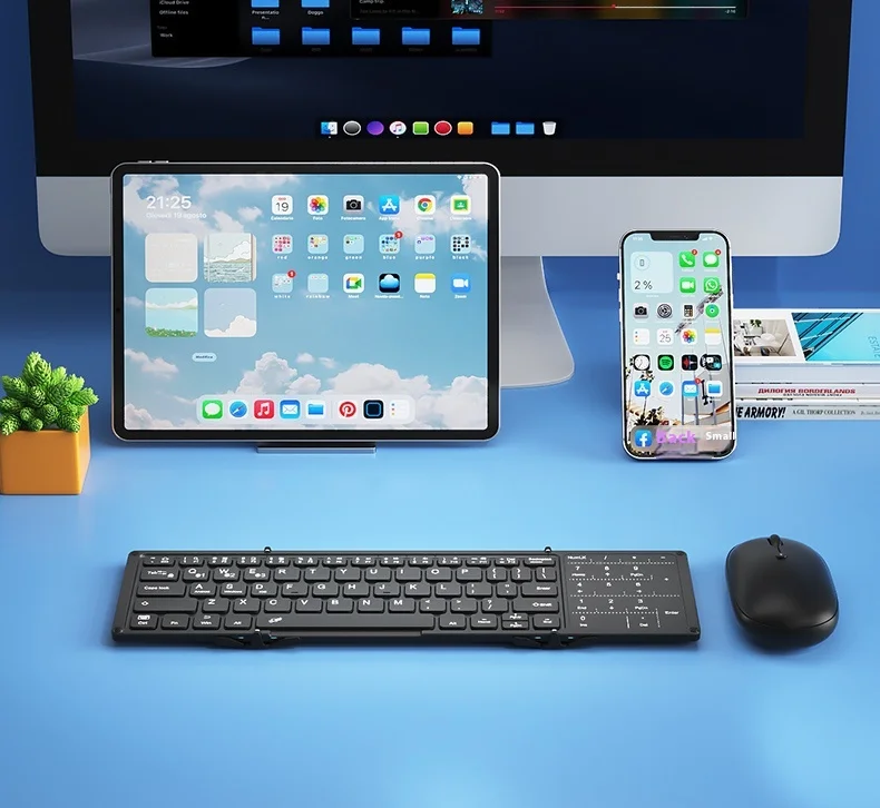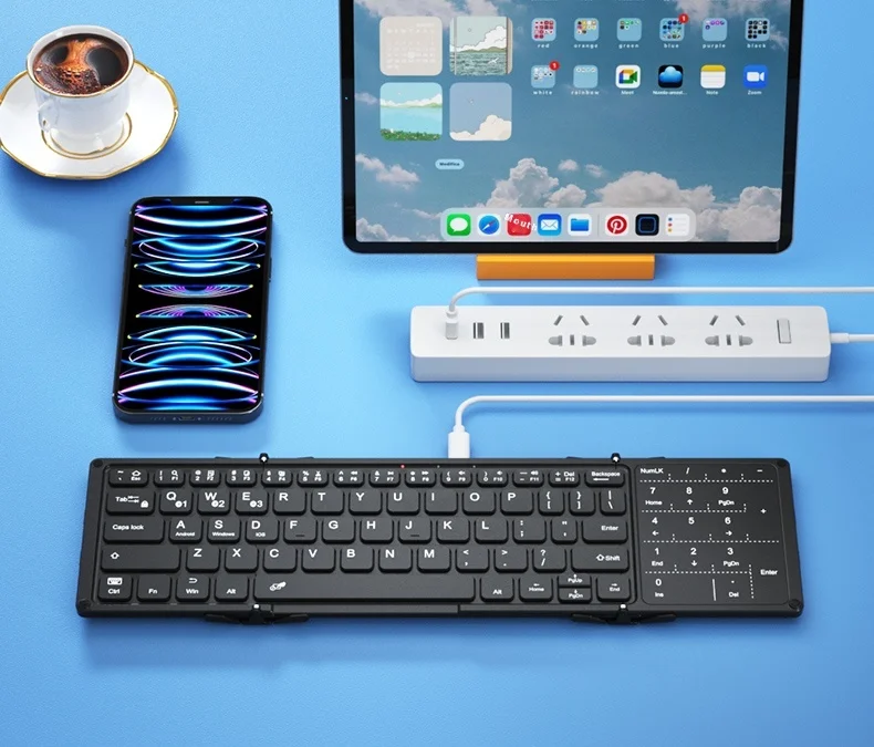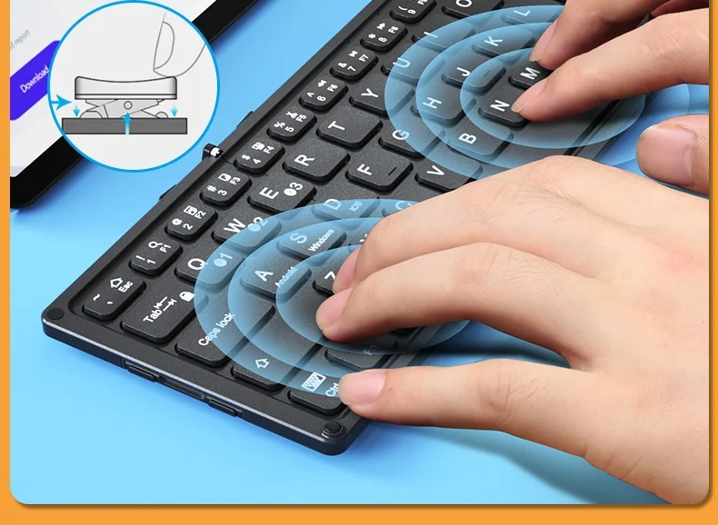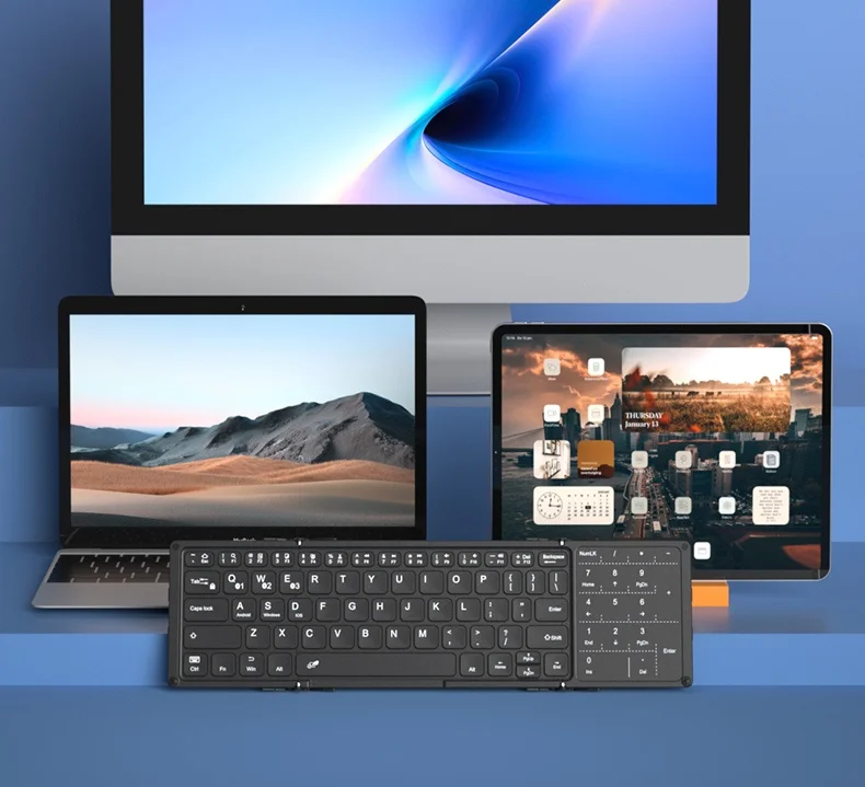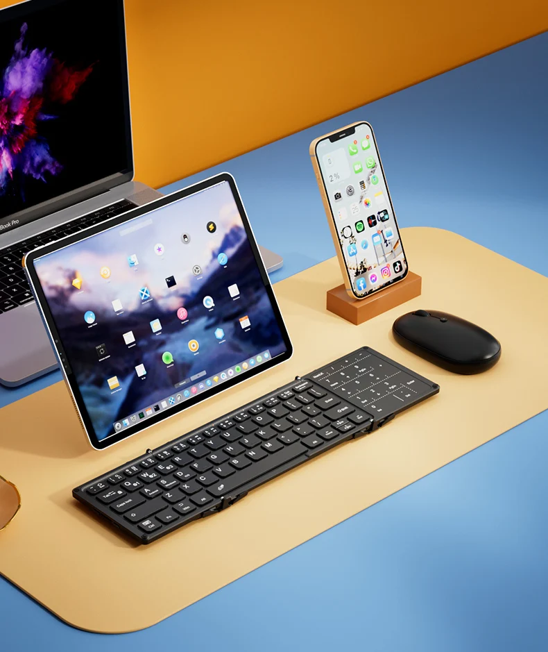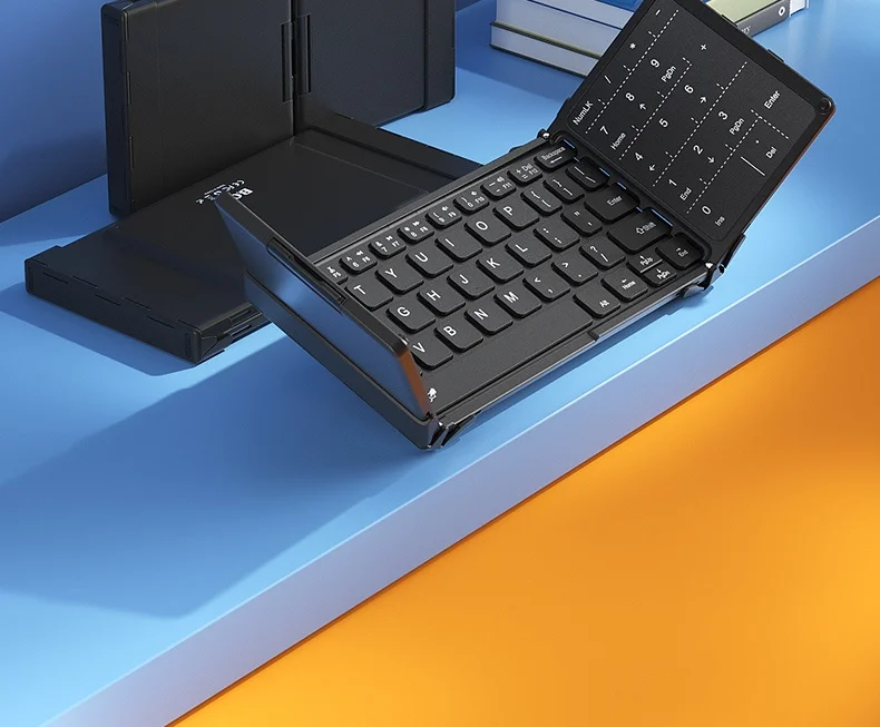 Tri-Folding Keyboard : Combine the nice input user experience of standard size keyboard and portable mini size advantage into one keyboard.