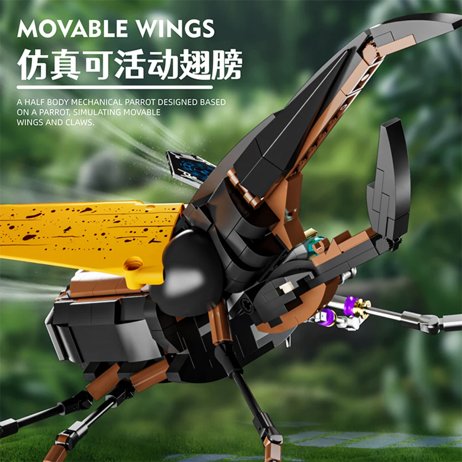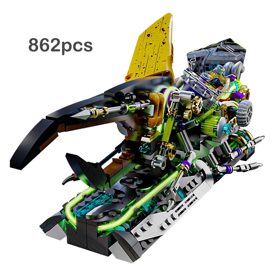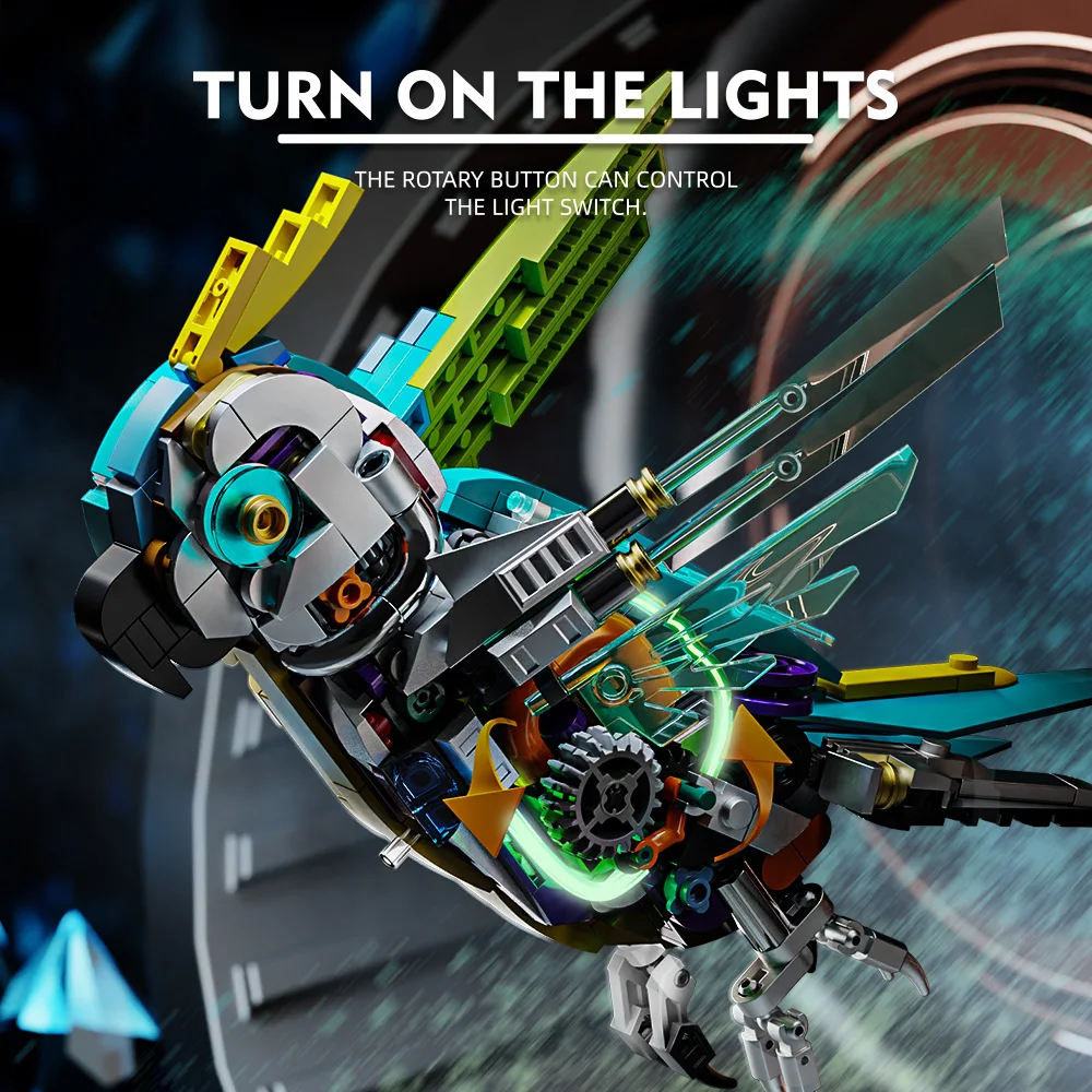 Technical Mechanical Parrot/Mechanical Shark With Light Building Blocks Kit Bird Animal Bricks Model Assembly Toys Creative Gifts