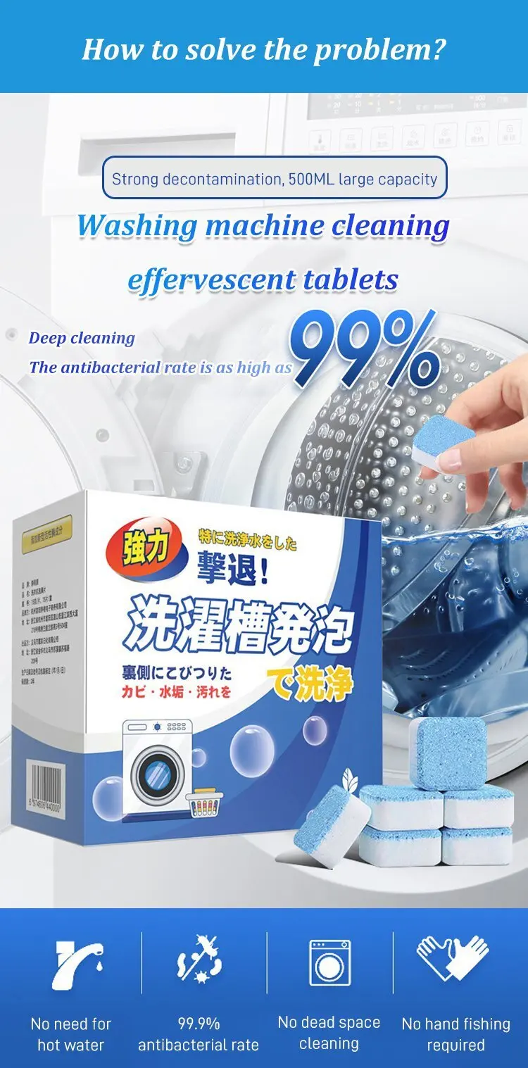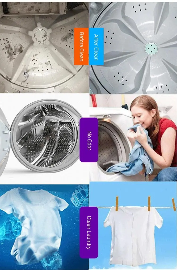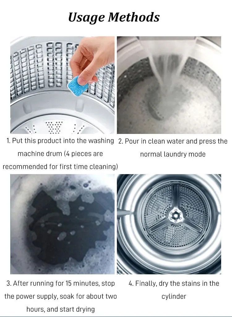 1.Revitalizing Clean: Leaves your washing machine spotless with our cleaning tablets. Its highly effective cleaning ingredients quickly tackle tough stains, eliminating dirt, and odors.