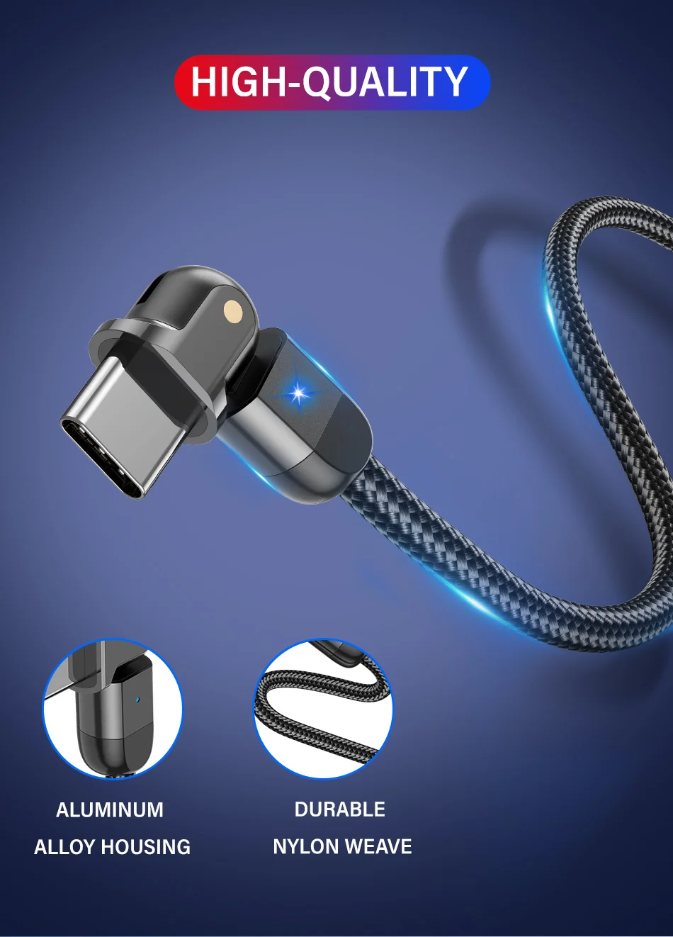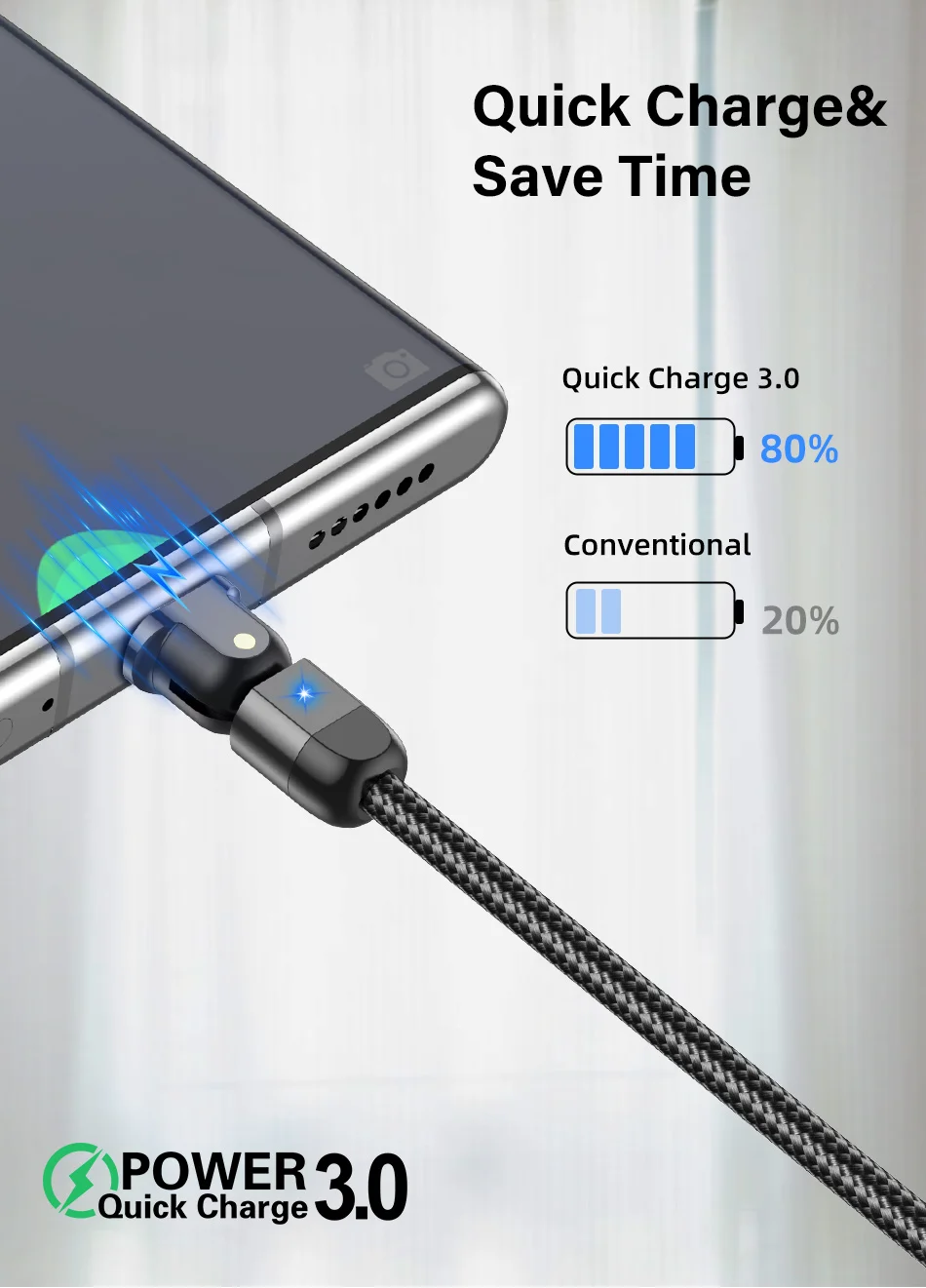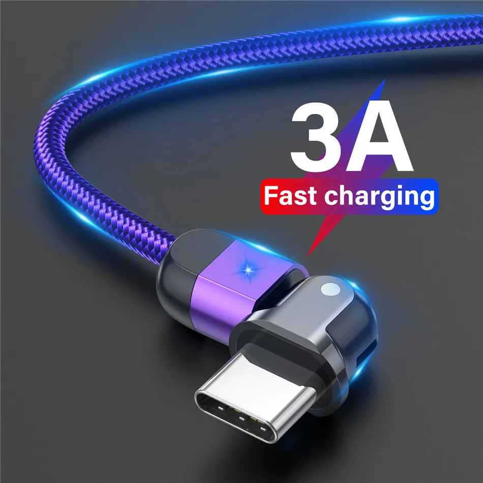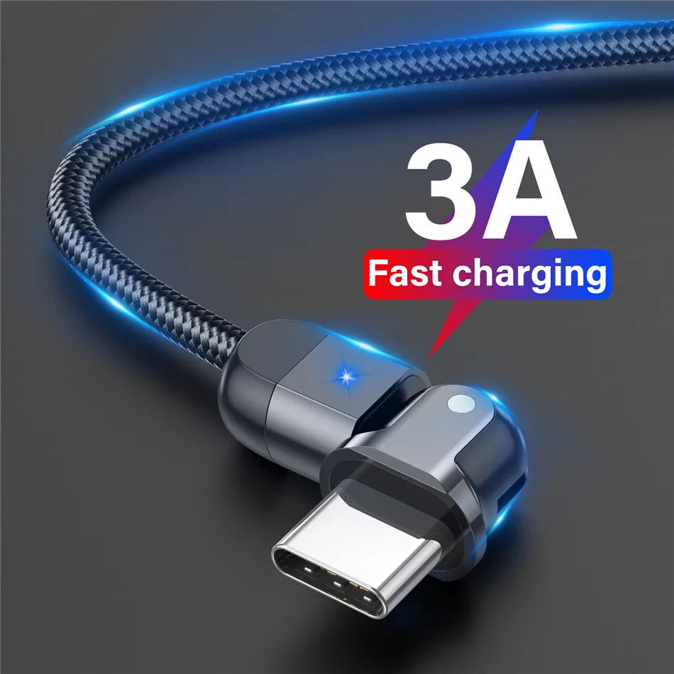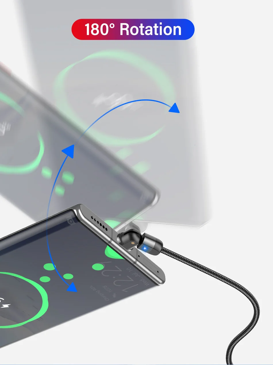 180º Rotation USB Cable Rotate Type C Lighting Android 3A Fast Charge Wire LED USB C Cable for Samsung Galaxy Huawei Xiaomi Mobile Phone