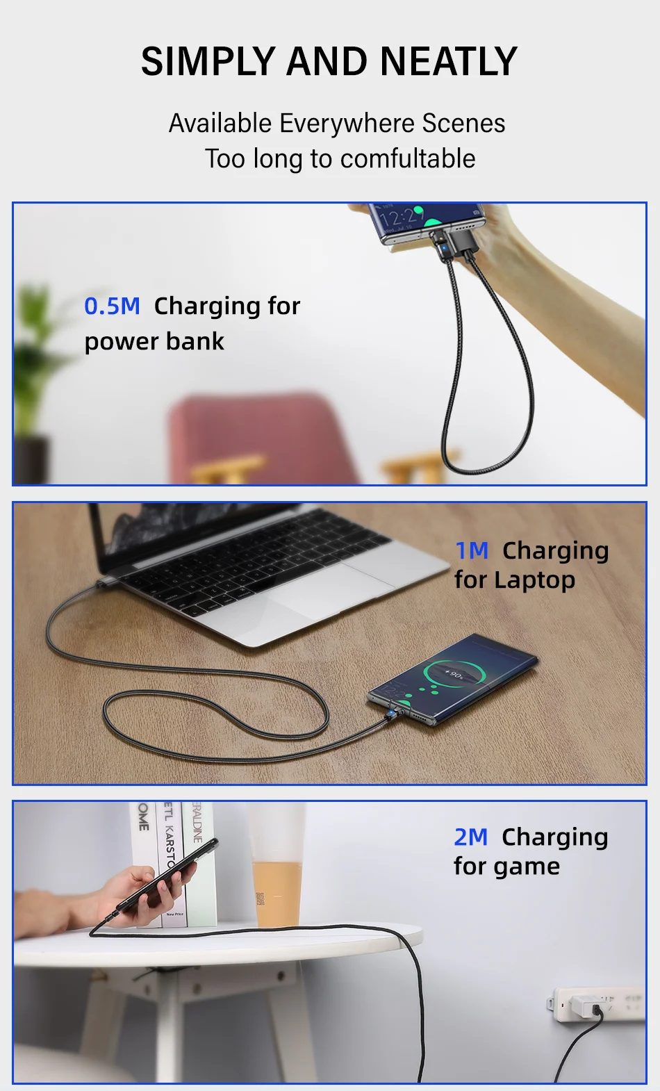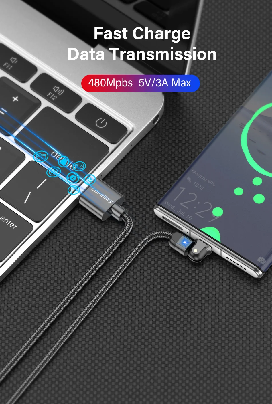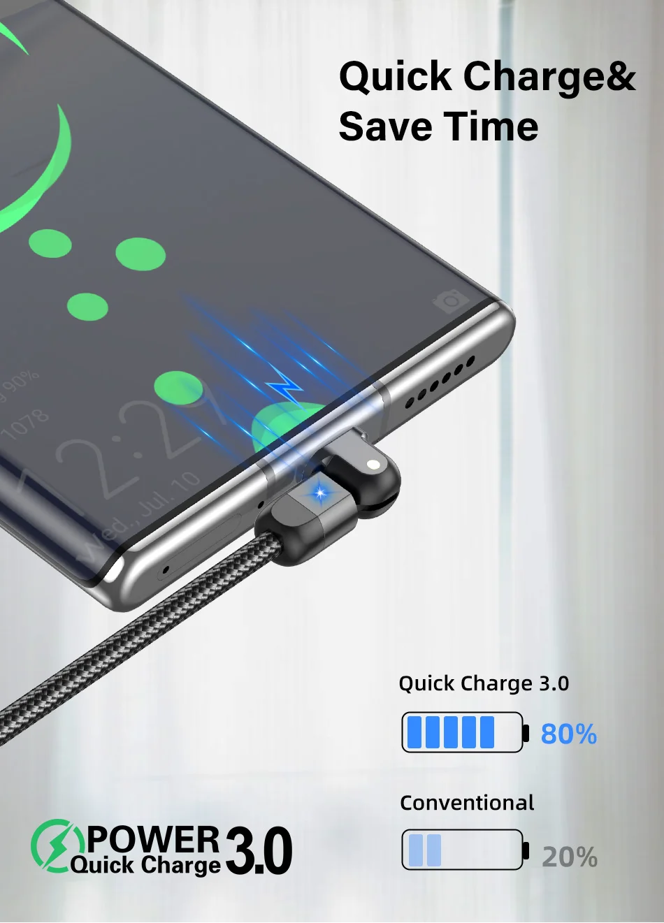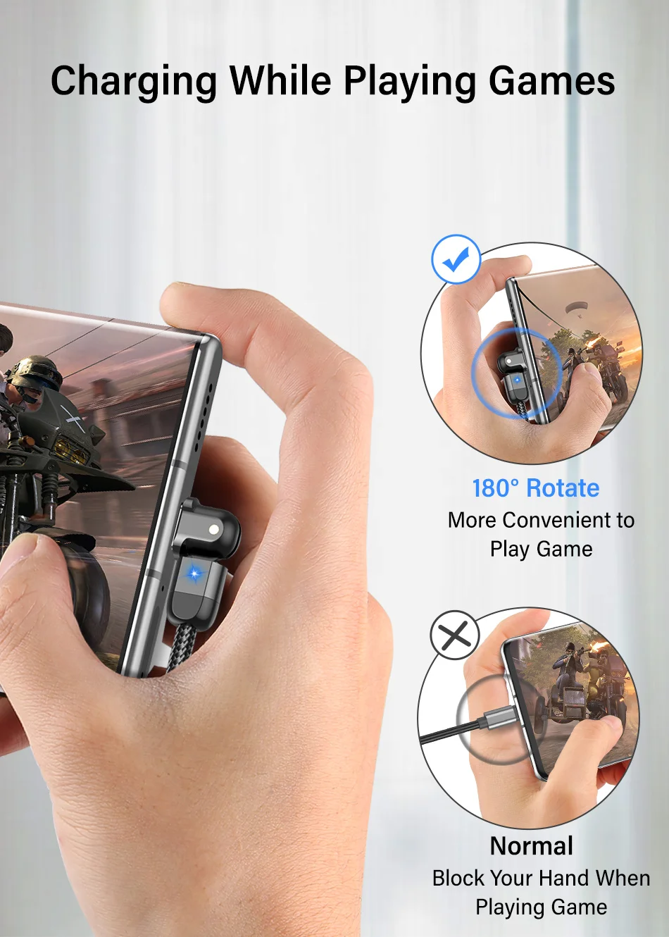 180º Rotation USB Cable Rotate Type C Lighting Android 3A Fast Charge Wire LED USB C Cable for Samsung Galaxy Huawei Xiaomi Mobile Phone