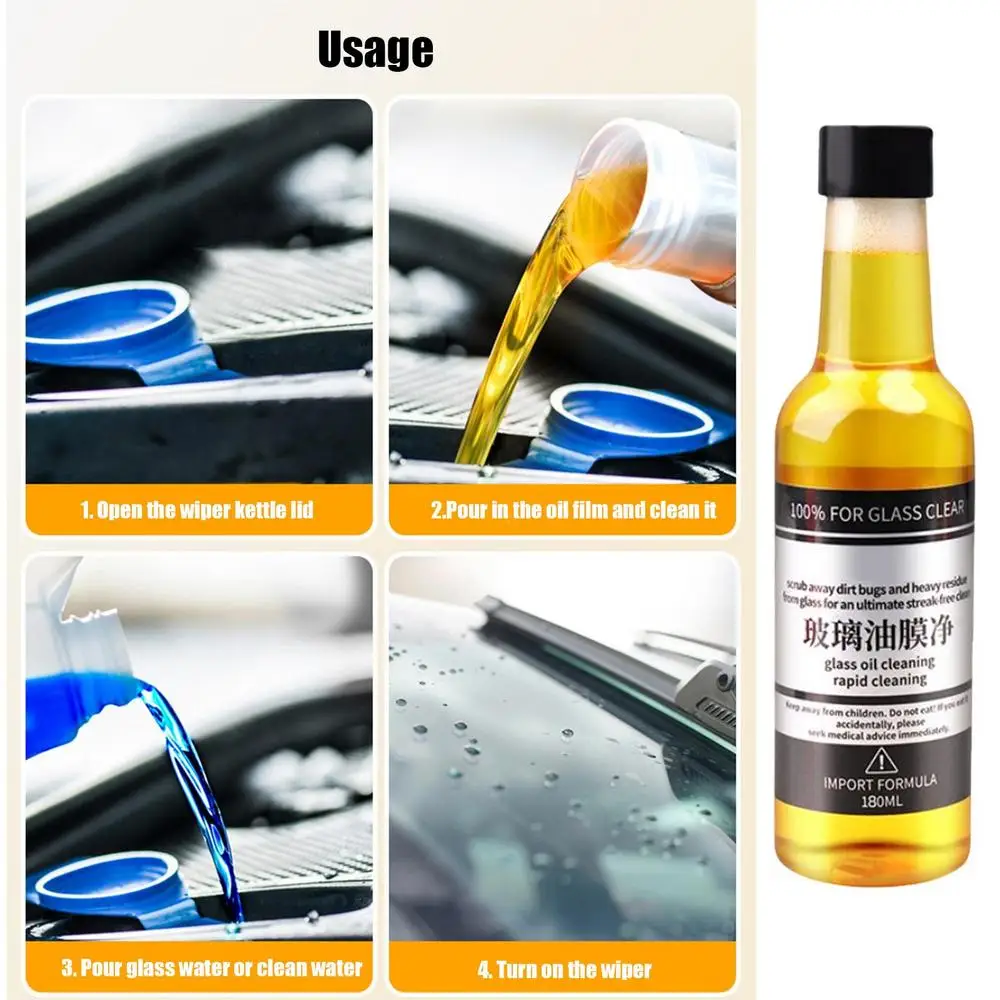 Ease Of Use: Car Glass Oil Cleaner is easy to use, just pour the glass oil film cleaner into the wiper kettle and fill up with pure water or glass water.