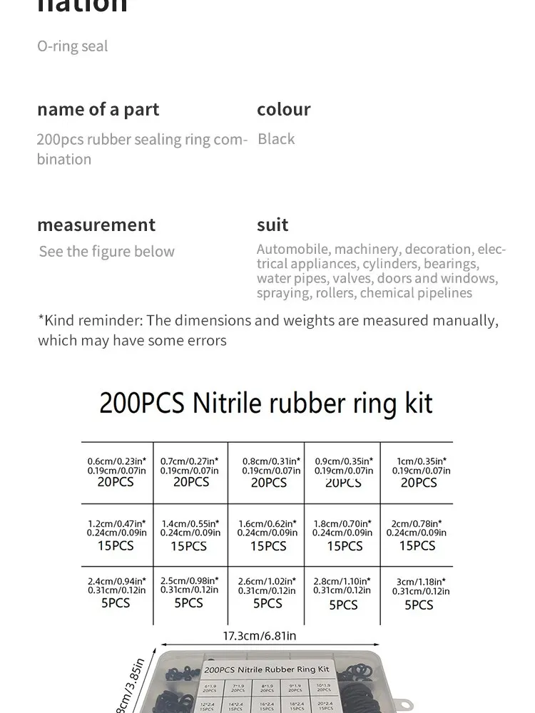 Package content: 1 box of 200pcs O-ring