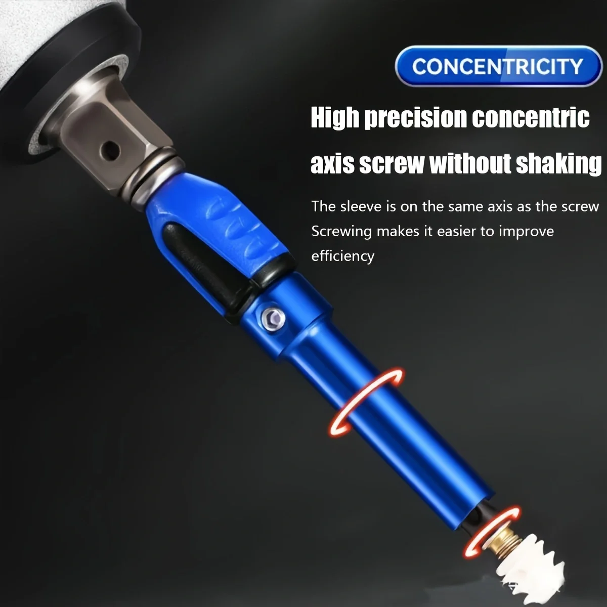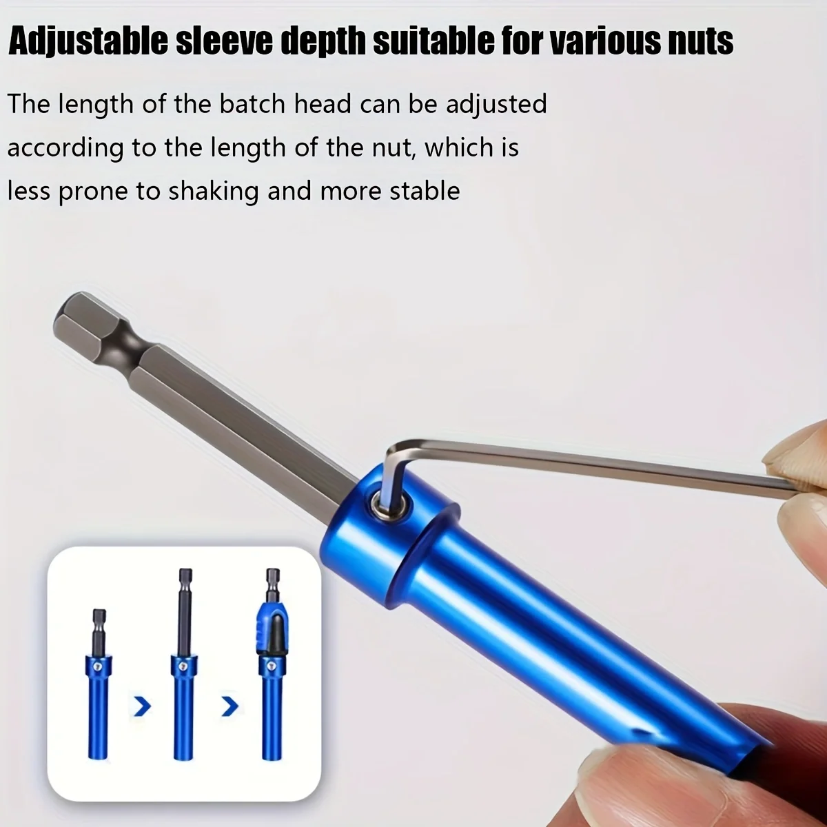 The sleeve's depth is adjustable, accommodating various nut lengths, reducing wobbling, and providing stability during screwing tasks.