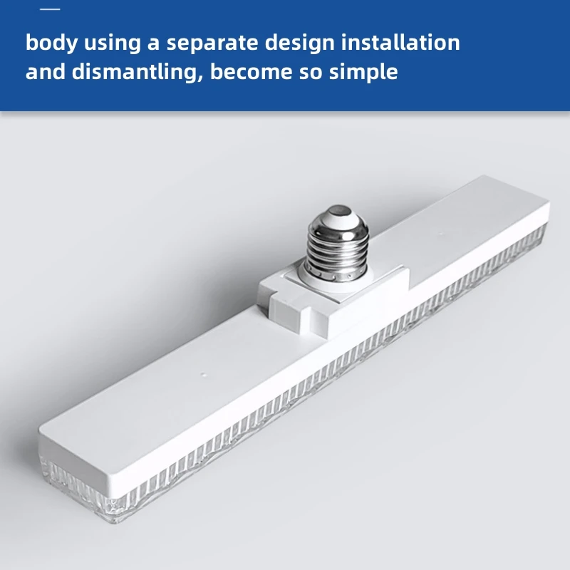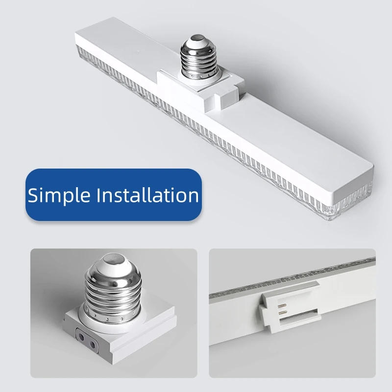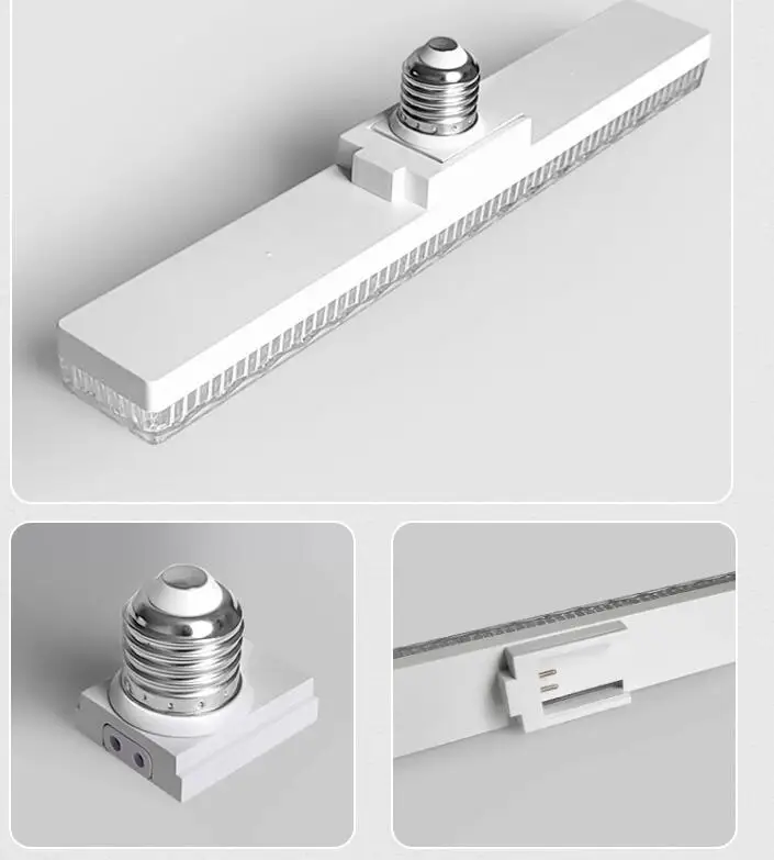 2.E27 threaded head can be rotated 360°, don't worry about the direction of the strip light after installation, it can be rotated horizontally 360°, after installation, you can rotate the light and the base won't rotate, so that you can adjust to the direction you want.