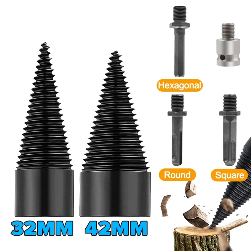 32/42MM Firewood Splitter Machine Drill Bit Wood Cone Punch Driver Square/Round/Hex Shank Drill Bit Split Drilling Tool
