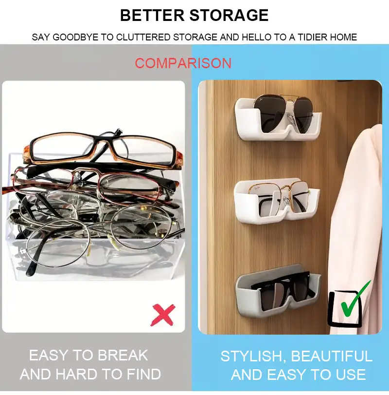 Space-saving - Hang spectacle frames on doors, entrances, living rooms, bedrooms and other places to organize and save space. They not only help your office, wardrobe and closet look clean but also provide a great way to elegantly store sunglasses on any free wall for easy access without taking up too much space.