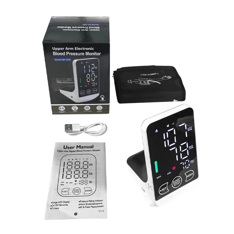 Digitization Voice LCD Large Screen Arm Blood Pressure Monitor English/Spanish Voice Large Display Screen Rechargeable Automatic Tonometer