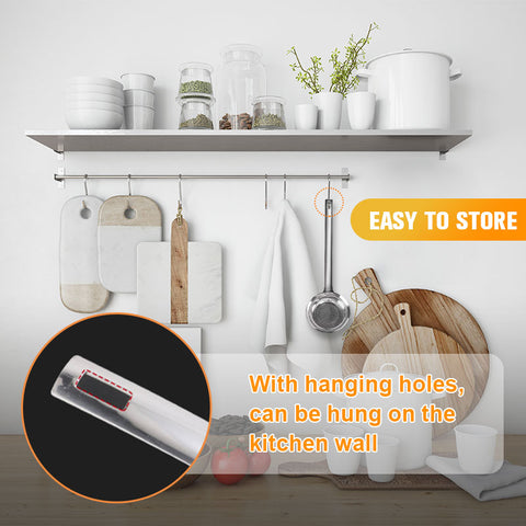 The end of the handle is designed with a hanging hole, which can be hung on the kitchen wall, which is easy to organize and does not take up any additional space.