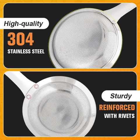REASONS TO BUY:✨ Kitchen oil scoop strainer: the stainless steel oil spoon is a great helper for your kitchen. it can be used to strain and filter all kinds of liquids, such as olive oil, lemon juice, soy sauce, etc. ✨ Colanders and strainers: use these strainers to rinse your salad leafs, fruits and fresh vegetables. they are also perfect for straining and rinsing salad leaves, fruits and vegetables. ✨ Colander with strainer: our oil spoon is made from food grade stainless steel and the fine mesh strainer is used to separate sift flour, sugar and other foods. RELATED INFO:✨ Find stainless steel 304 kitchen filter spoon,stainless steel 304 oil colander spoon with fast return and fast delivery.