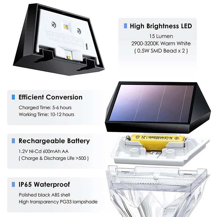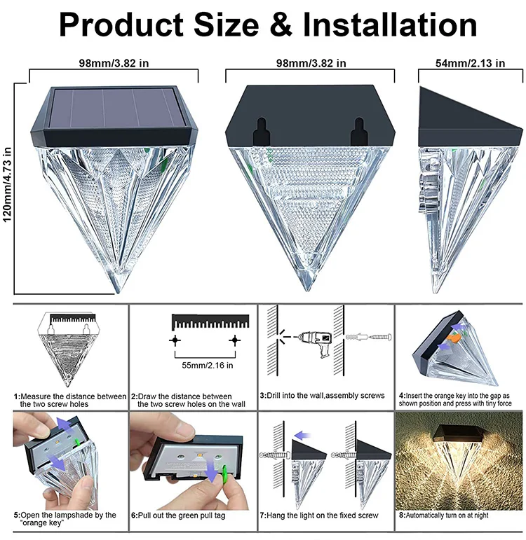 Solar diamond wall light, garden landscape light, can be used for fences, walls, steps, trees and other places.