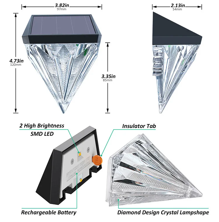 High-end Solar Diamond Light LED Wall Light Solar Fence Light Outdoor Wall Light Stair Light Waterproof Step Light Outdoor Light