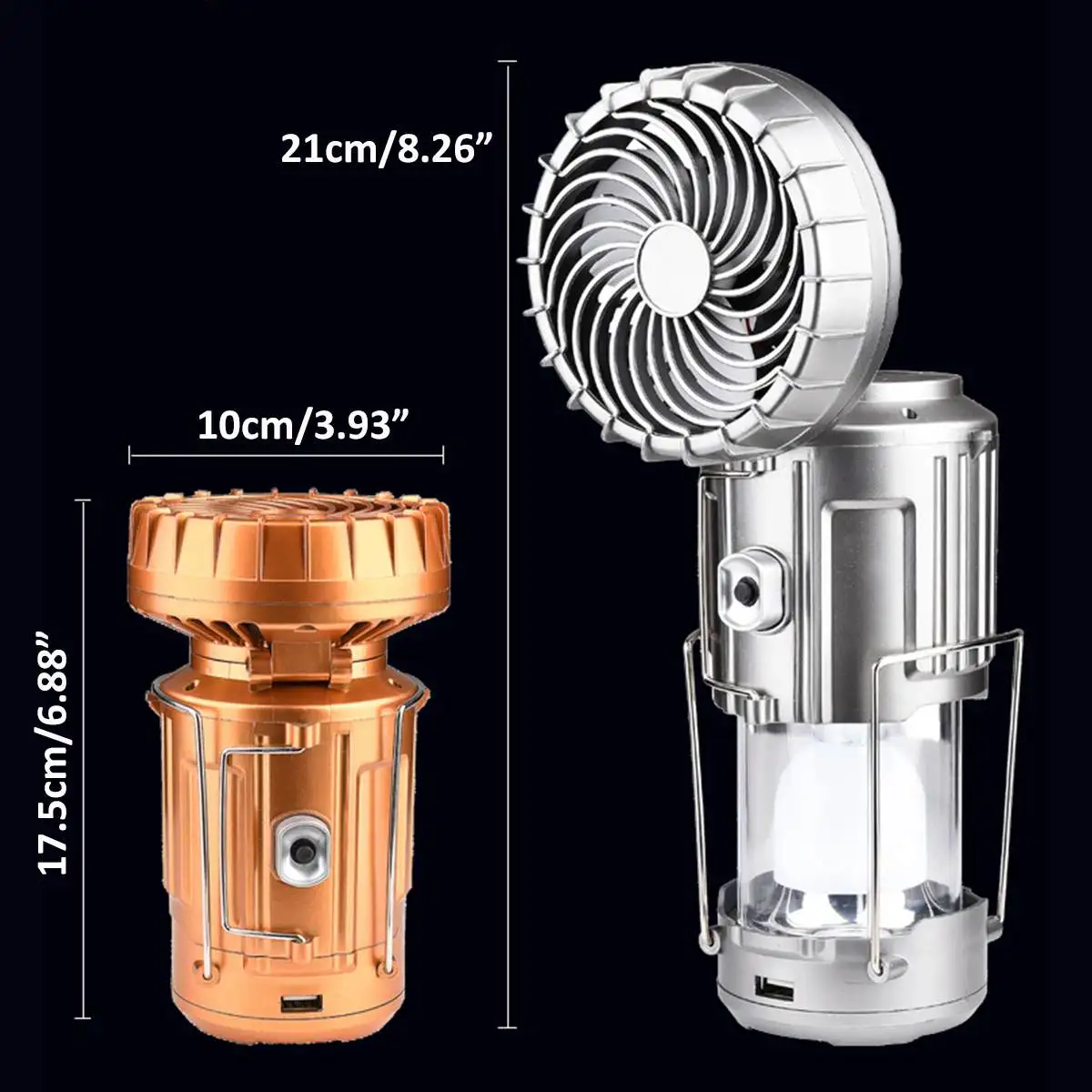 -Double switch design, independent control of camping lamp fan switch, more convenient to use.
