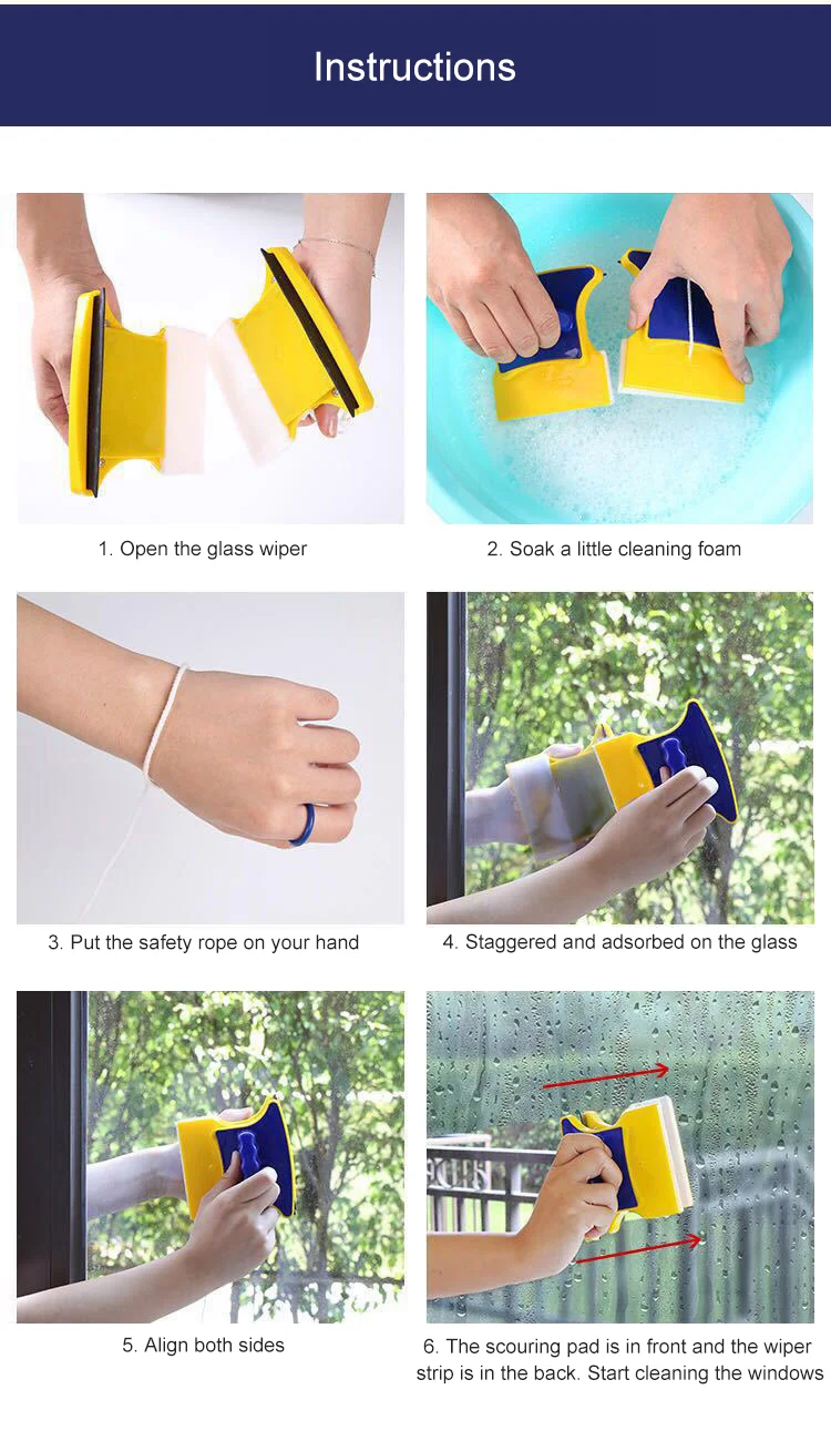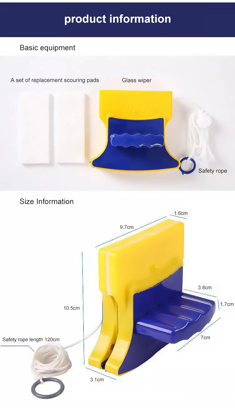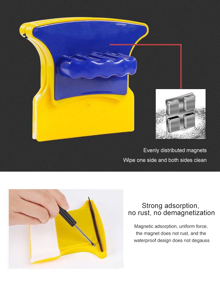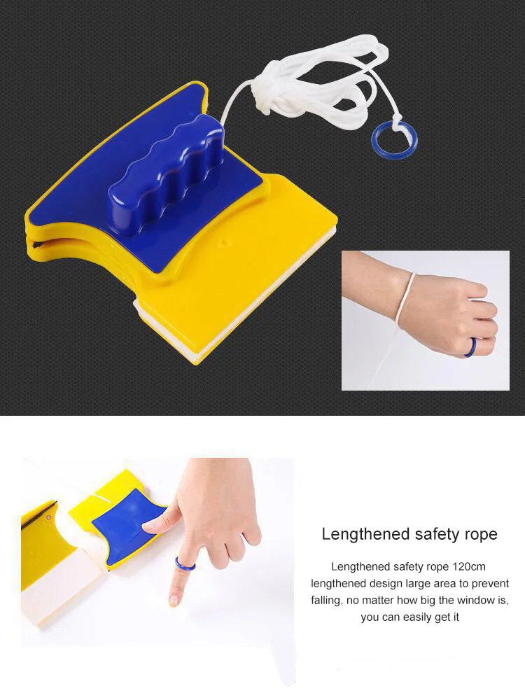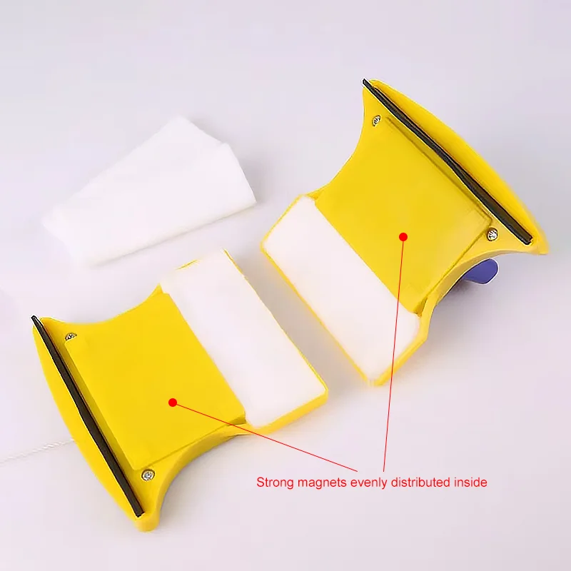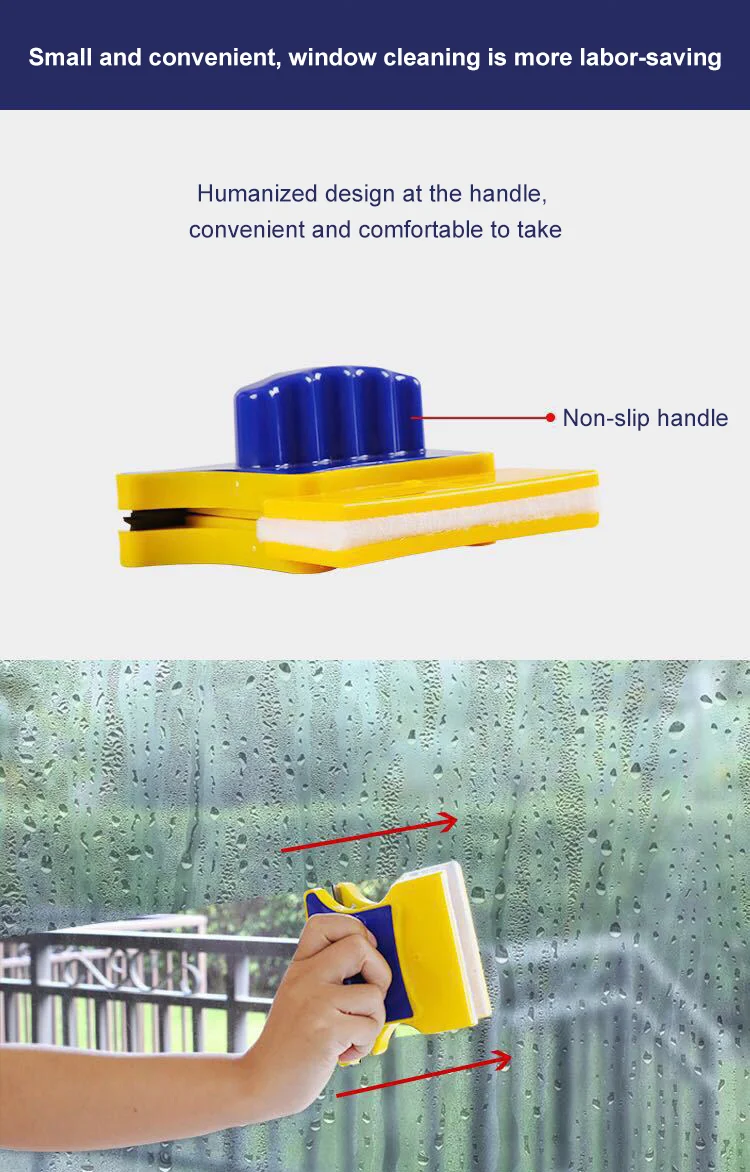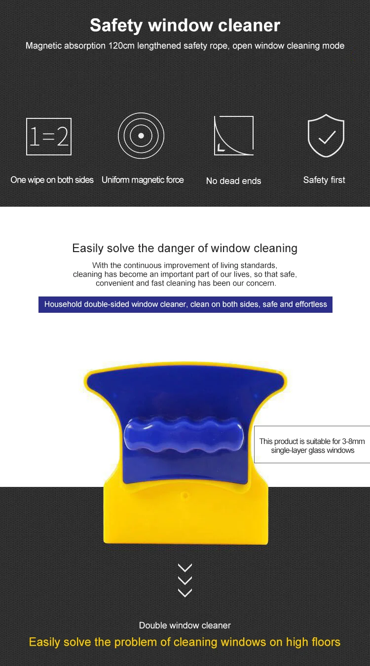 • Strong Adsorption: It has a strong magnet that holds cleaner firmly on both sides of the window. It is convenient and safe to clean the outer window surface while staying inside without any falling incidents.