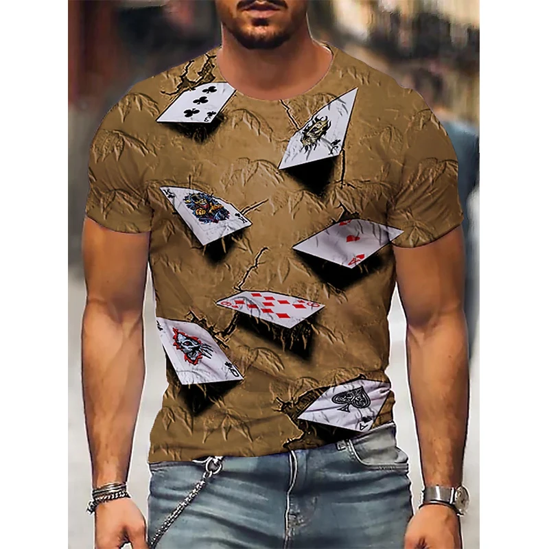 Men's Tee T shirt 3D Print Graphic 3D Poker Plus Size Round Neck Print Short Sleeve Tops Casual Vintage Men Clothes summer