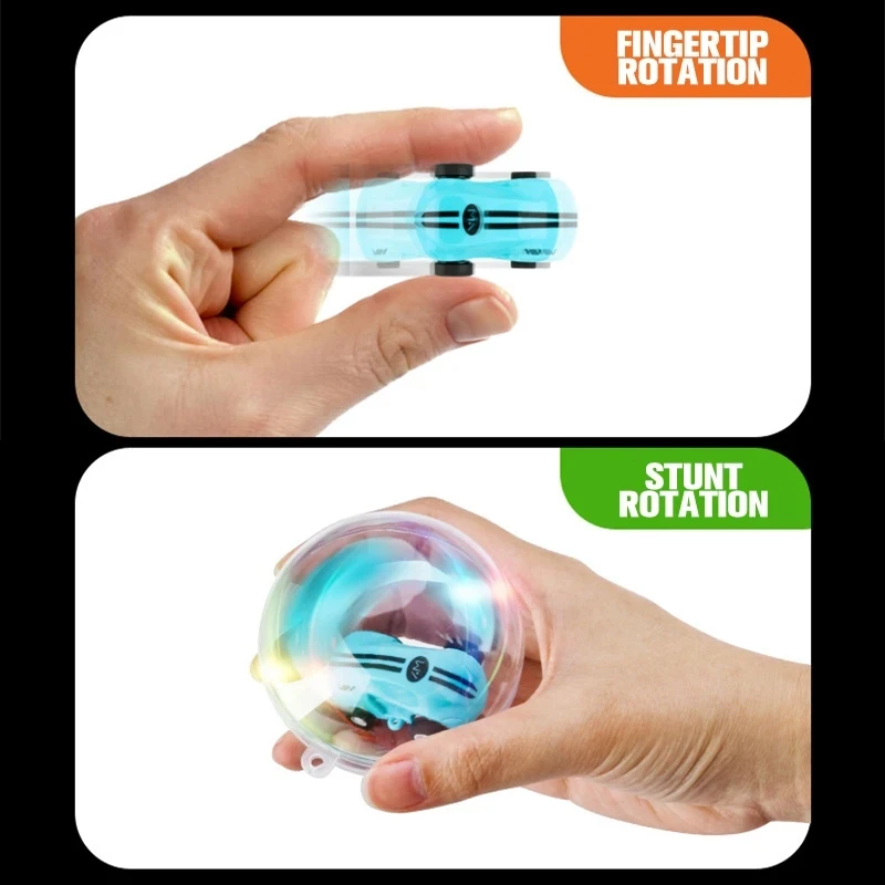 2.This mini Car look like a cute mouse, which can trigger children's curiosity and imagination. Surrounded by a smooth plastic ball, the Rotating stunt car will not hurt our hands.