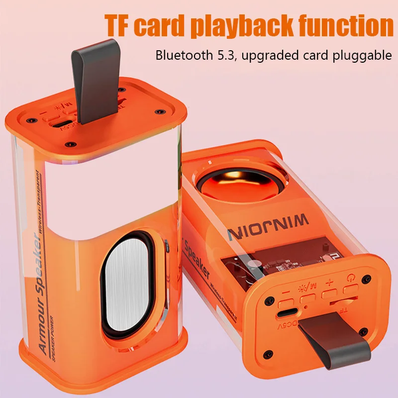 Mini Speaker Portable Transparent Mecha Wind Bluetooth Speakers LED Light Wireless Stereo 360 Degree HD Sound Outdoor Subwoofer