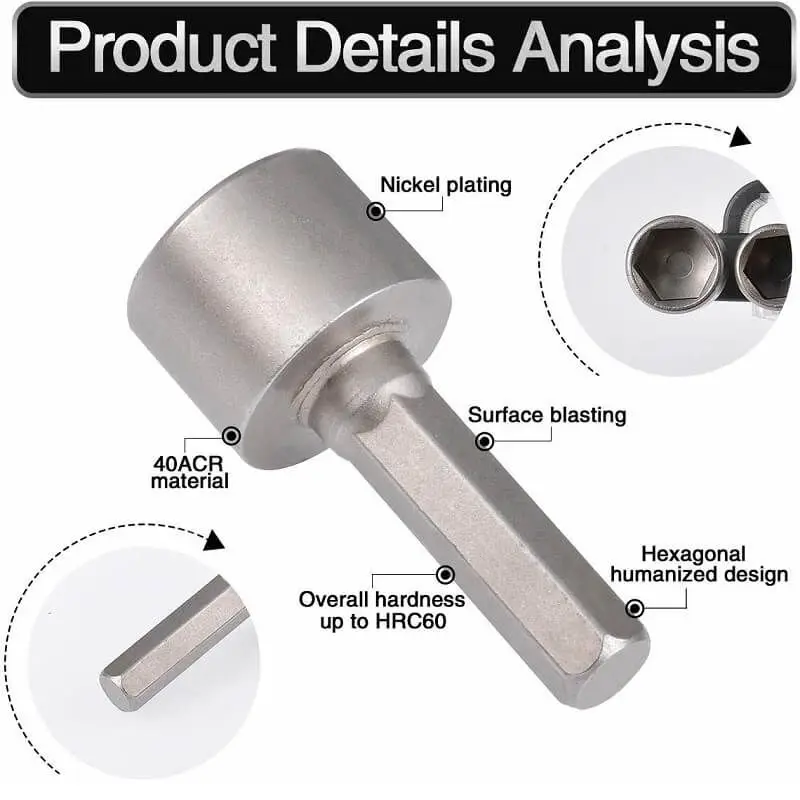 Applicable for installation in the following models of hexagonal tools: 3/16(4.76mm), 1/4(6.35mm), 9/32(7.14mm), 5/16(7.93mm), 11/32(8.73mm), 3/8(9.53mm), 7/16(11.11mm), 5mm, 5.5 mm, 6mm, 7mm, 8mm, 10mm, 12mm.