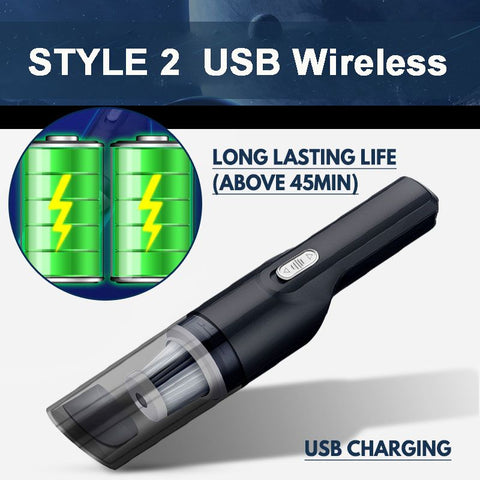 Built-in 2x2000mAh lithium batteries which make the vacuum last more than 45min. You can easily recharge it with car USB interface, home socket, power bank, mobile phone charger, computer and so on.